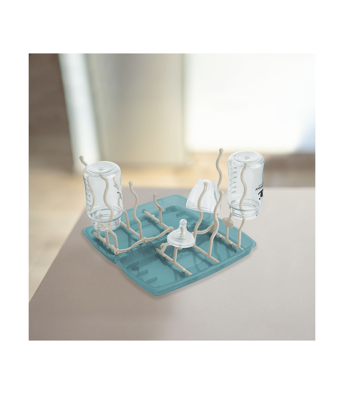 The folding bottle drainer allows you to dry bottles, nipples, pacifiers and other nursing accessories in an orderly manner. Its main feature is its travel size and compact folding, and the multiple rods and supports offer ample drying capacity. You can take it with you on a trip and unfold it when you need to dry the baby's bottles.