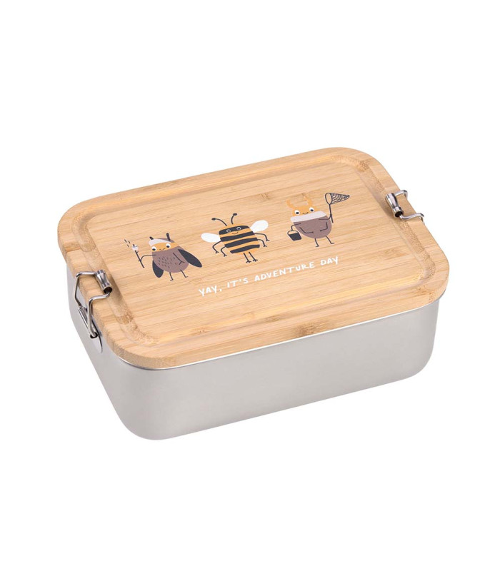 LÄSSIG's robust stainless steel children's lunch box with its bamboo lid ensures that hungry nature lovers have what they need. This lunch box is BPA free, and made with a bamboo lid and divider that you can place wherever you like.