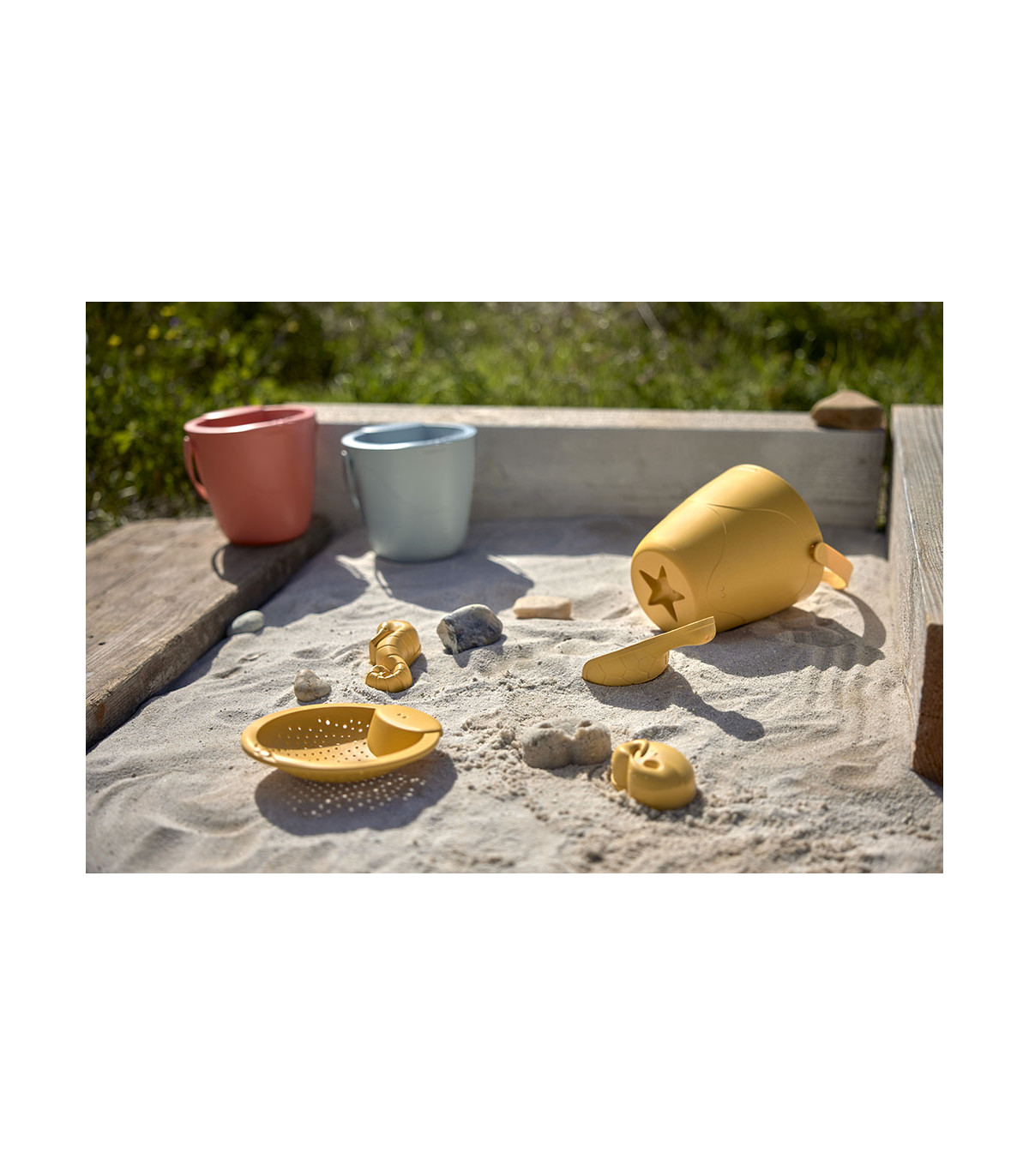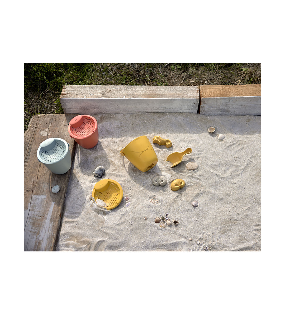 The Lässig beach toy is perfect for digging, playing in the sand and splashing around. Its 5 pieces playfully promote the handling of two elements, water and sand, to stimulate the senses of the little ones and their sensory perception.