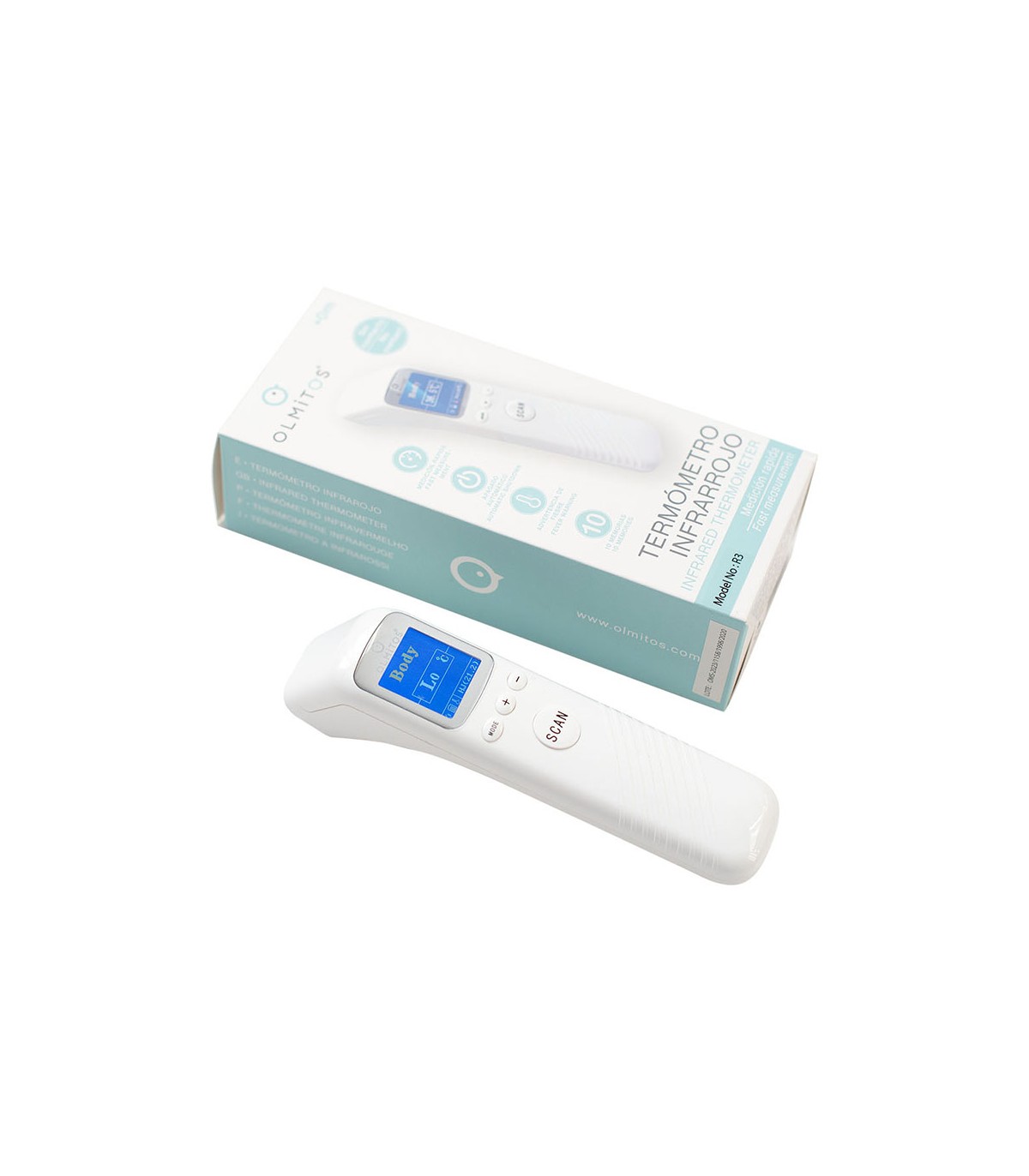 Infrared thermometer that works without contact with the skin. It is perfect for fast and efficient measurement.