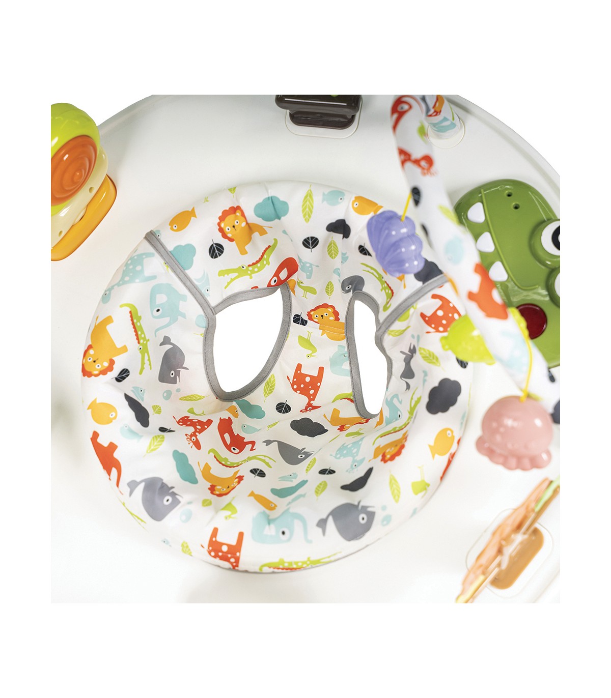 - Support platform with bounce for a fun playing experience, encouraging the child to move and explore, helping to develop leg strength and coordination.