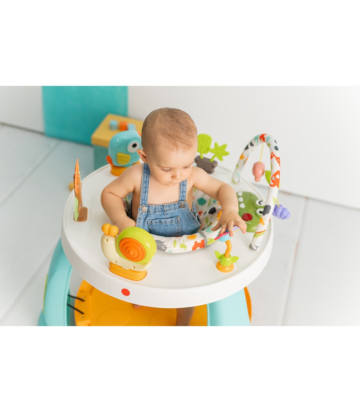 The 2-in-1 Activity Center that grows with your baby: combines a bouncer with bounce to strengthen their legs and a 360º rotating sensory play table.