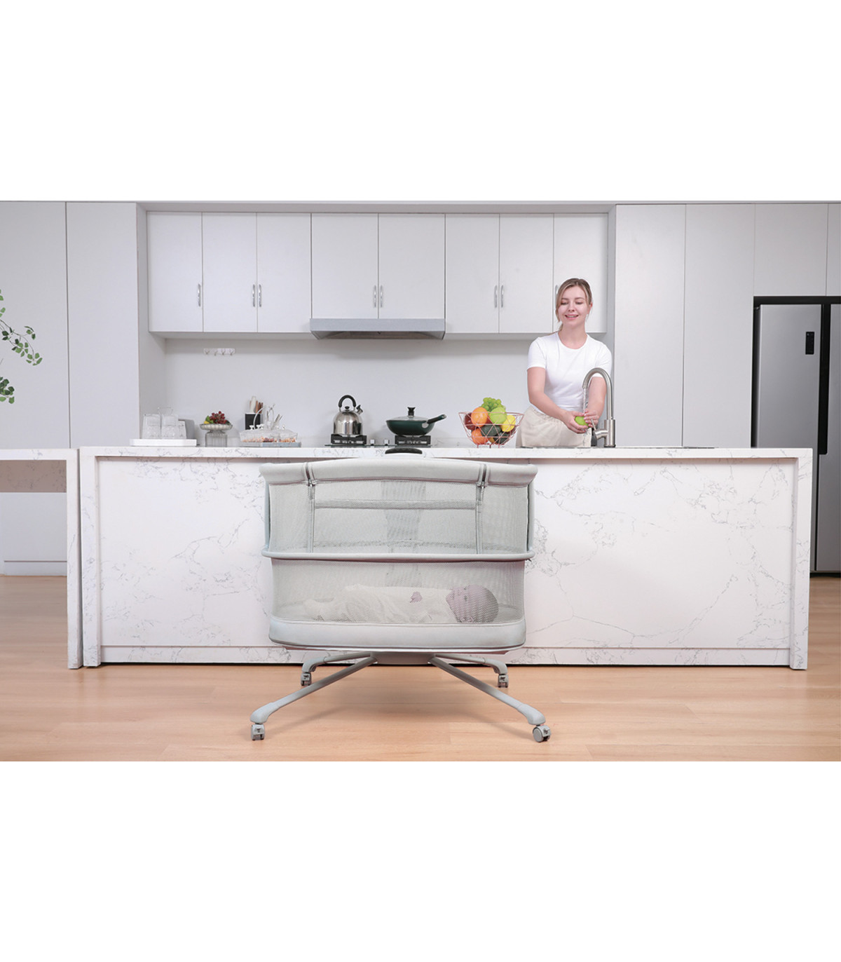 Discover the versatility and comfort of the innovative co-sleeping crib, designed to adapt to the needs of the baby and make life easier for parents. This multifunctional system easily transforms into a bassinet, mini crib, co-sleeping crib and playpen, providing multiple options for each stage of growth.
