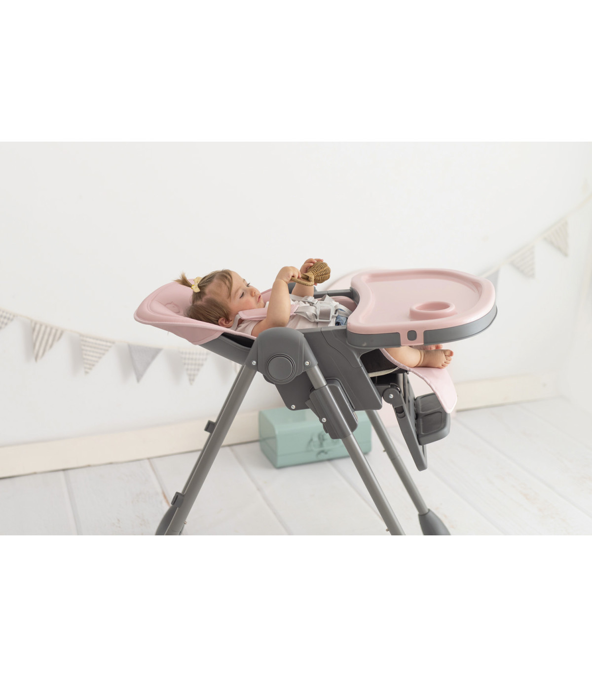 A multi-position highchair that provides a comprehensive experience for the little one and the whole family. The reclining backrest and different height positions allow the baby to lie down completely or become a comfortable hammock ideal for short naps and breaks.
