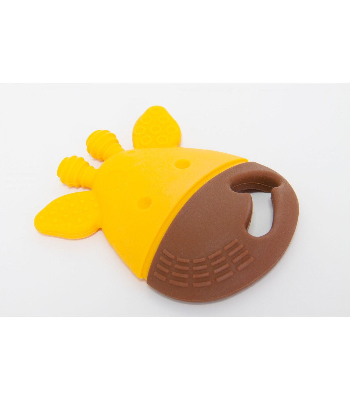 This teether is fun, durable, sensory, and lightweight. The different textures will not only calm them in the teething processes but also, their different textures will train them to feel more comfortable with different foods. It is made with food grade silicone free of phthalates and BPA and suitable for freezer and steam sterilizers.