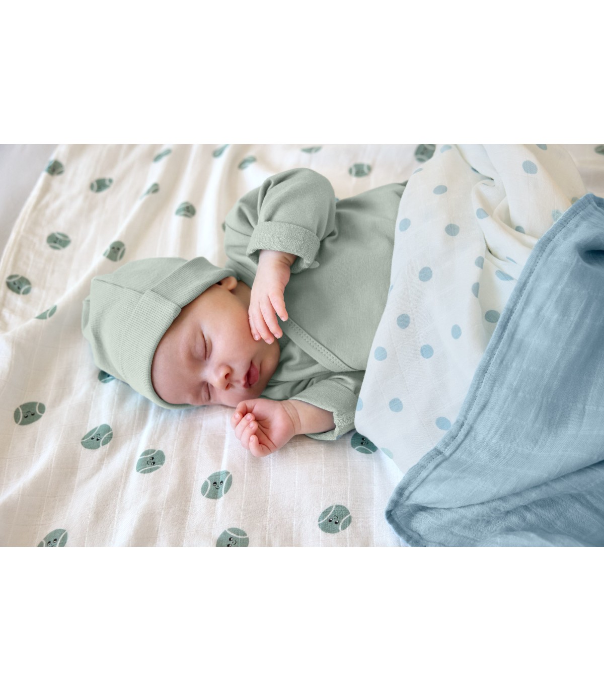 Pack of three muslin made with the perfect combination of bamboo fiber and cotton that offer the greatest naturalness and comfort.