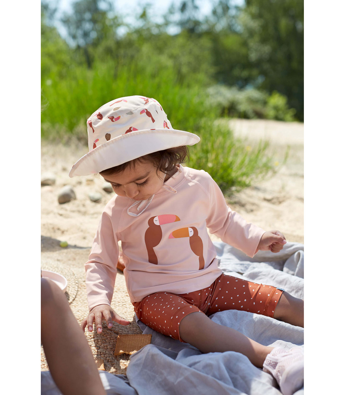 The key feature of this colorful hat is that it is reversible so it can be worn on both sides. The hat features a colorful design on one side and is solid on the other side. The LÄSSIG hat offers UV 80 protection, making it a great summer accessory.
