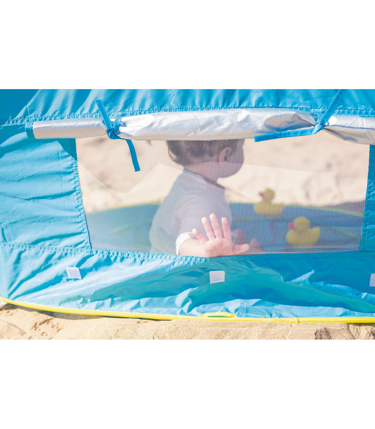 Beach tent to protect the baby from the sun and the wind. It includes a ventilation window for more airflow and a small pool where you can keep your baby cool and protected from the sun.
