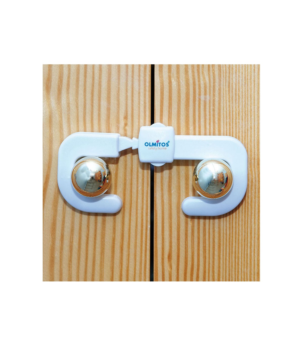This device strongly hugs both cabinet knobs or handles and prevents children from opening them.