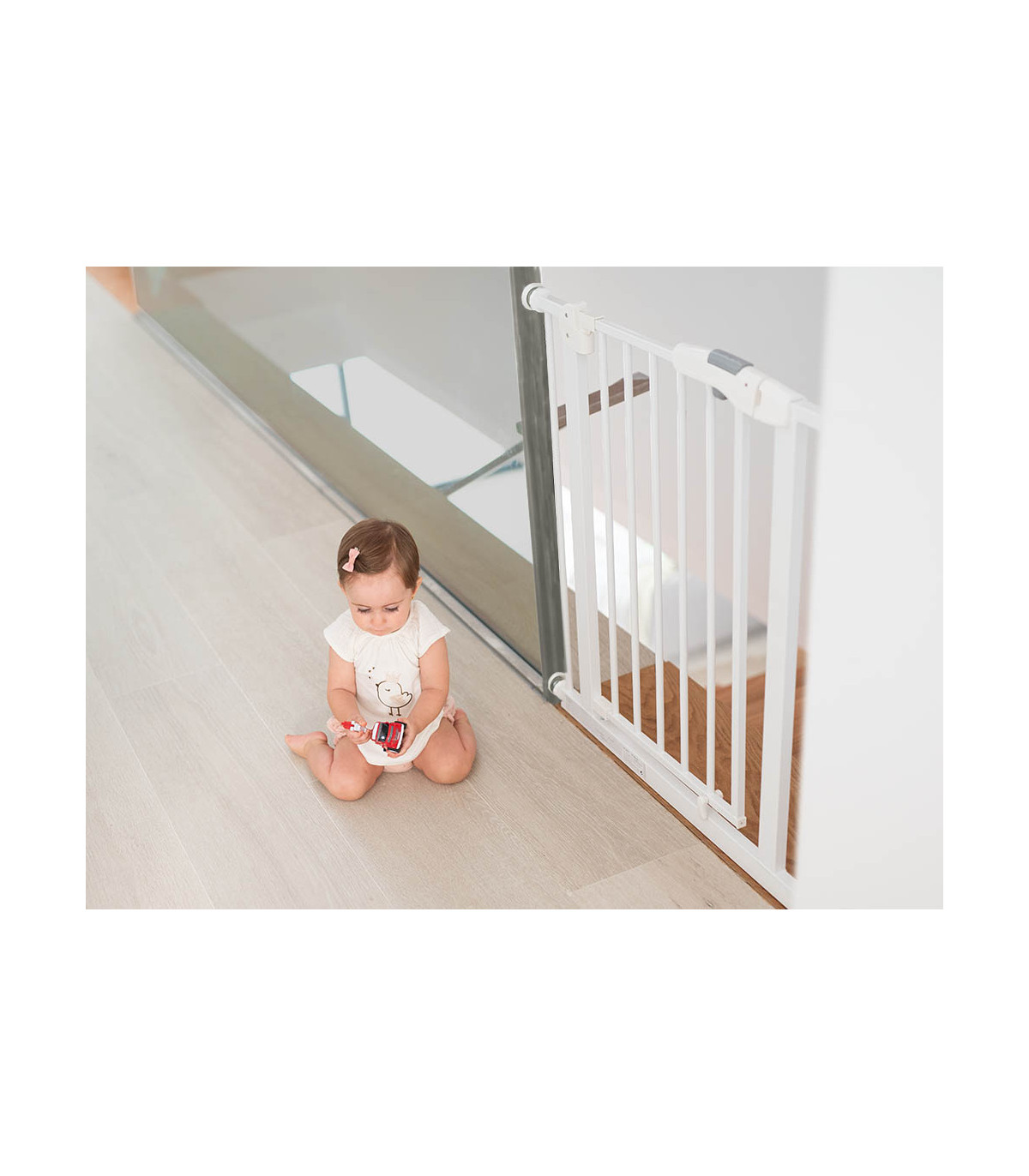 Practical extendable security door with easy installation without holes. It can be installed in openings and doors between 75 and 85 cm and has the possibility of opening on both sides.