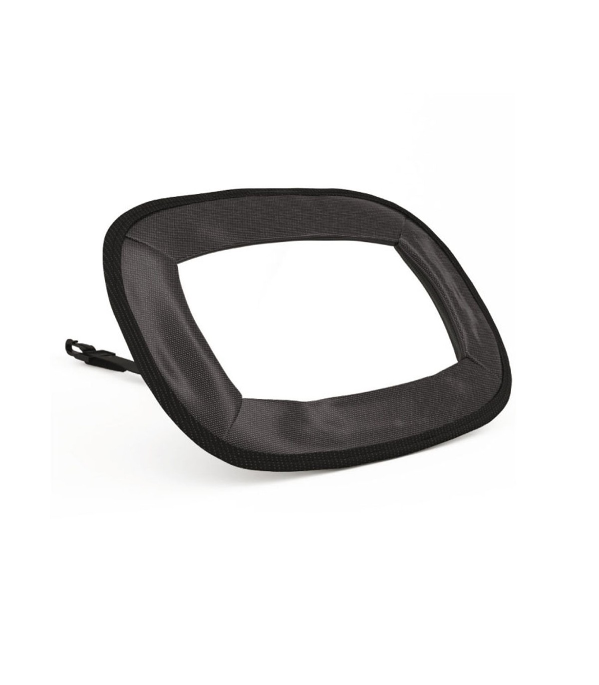Large convex shaped rear view mirror with wide viewing angle. In addition, it adapts to all types of seats, with and without head restraints and will always stay in place thanks to the non-slip TM-Grid material. It is also made with an unbreakable material for greater security.