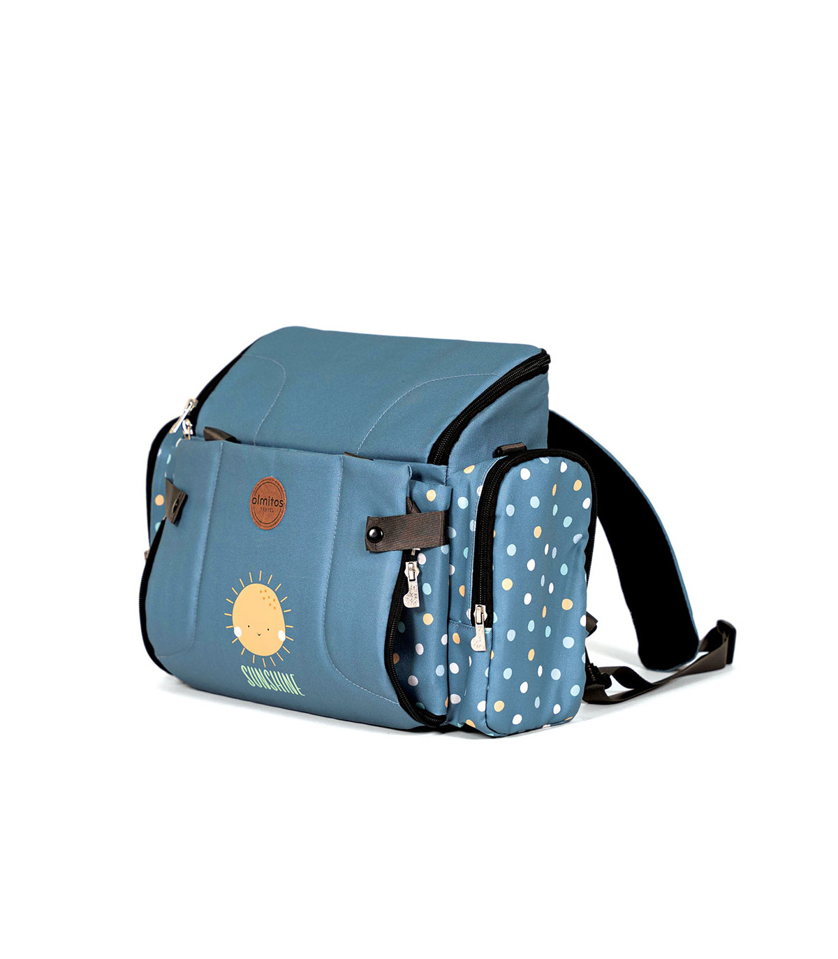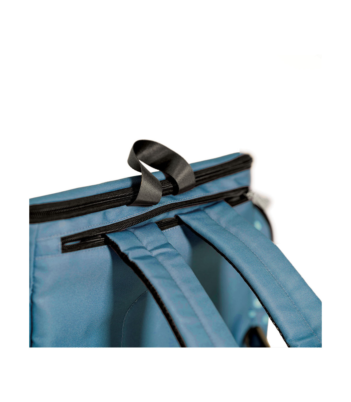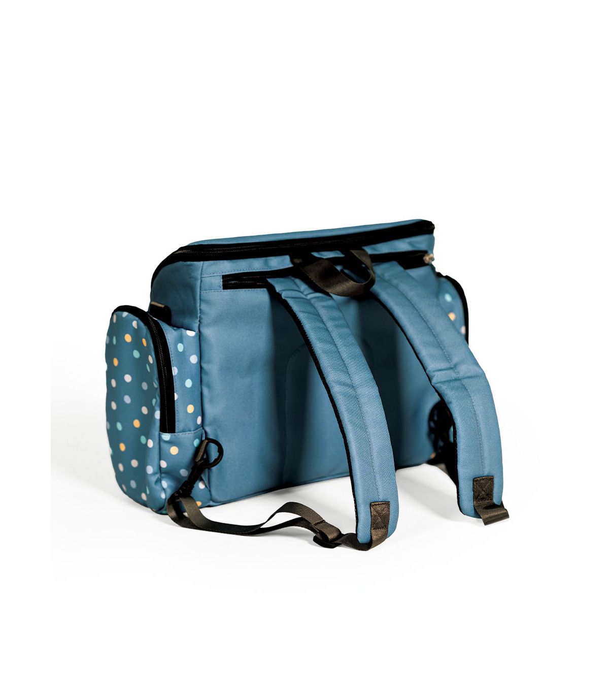 The foldable booster seat is lightweight and easy to carry thanks to its adjustable handle. With a 5-point safety harness and adjustable straps, it secures your child firmly in any chair. It includes convenient pockets for bibs and toys, and its rigid base provides comfortable support. Plus, it features an interior compartment to organize baby's essentials and is easily removed for optimal cleaning. Ideal for active families, it can be worn as a backpack or shoulder bag.