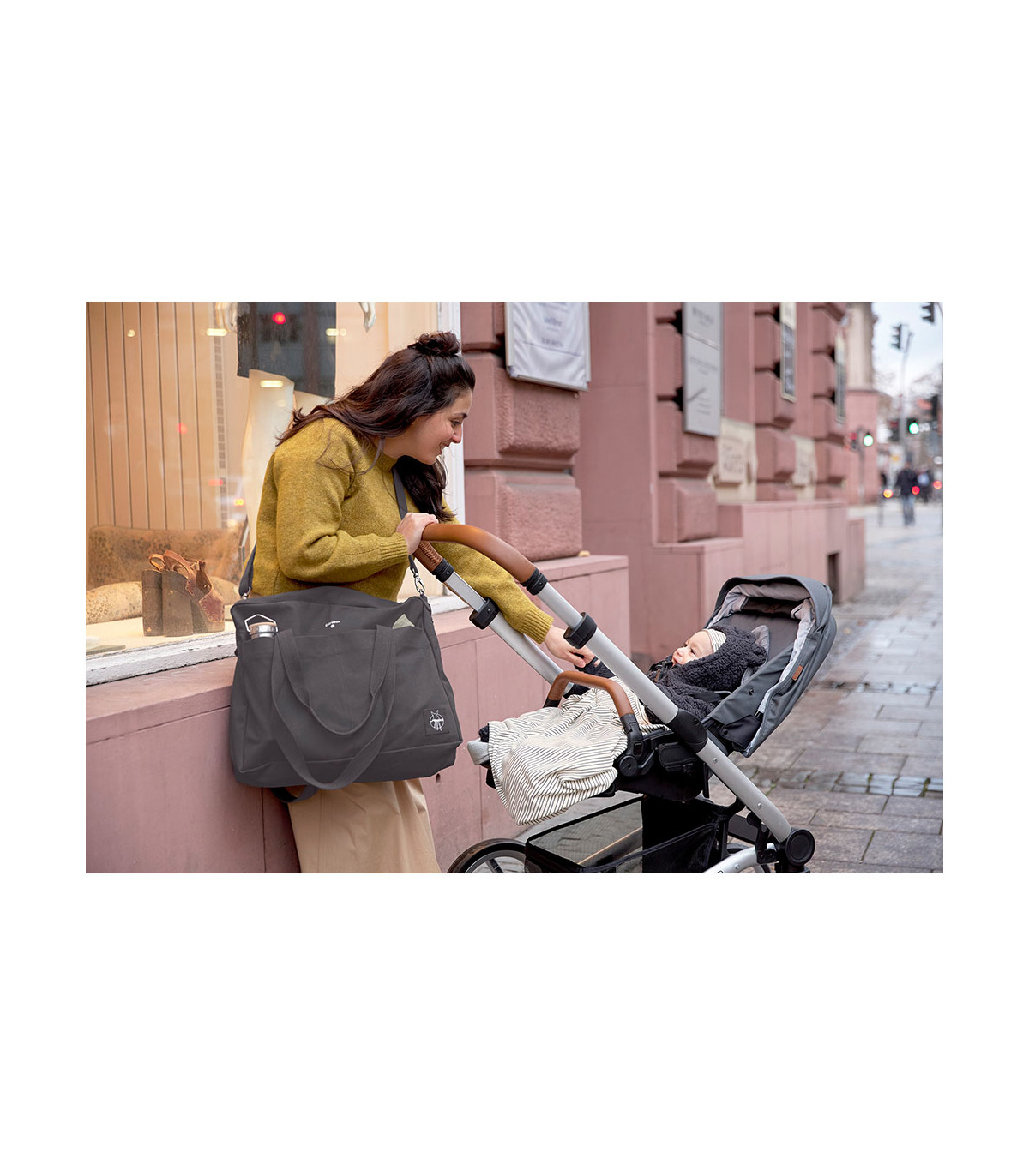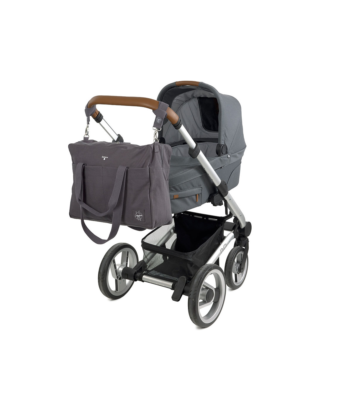 Made from organic cotton! The new Cotton Essential diaper bag from Lässig is made with ecological materials that care for the environment. Its exterior finish is water repellent and it is equipped with a changing mat, car hooks and a shoulder strap. It has a large storage capacity and different organizer pockets.
