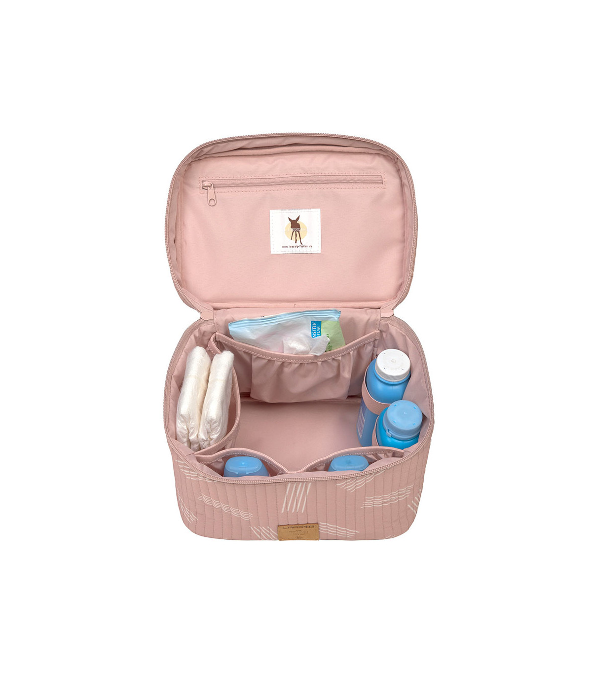 The Nursery Caddy To Go is not only a stylish storage basket for the changing table, but also a practical toiletry bag for your next trip. It can store all the most important items for your baby's hygiene. This may be your first toiletry bag!