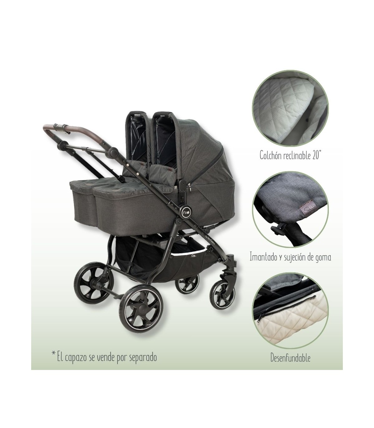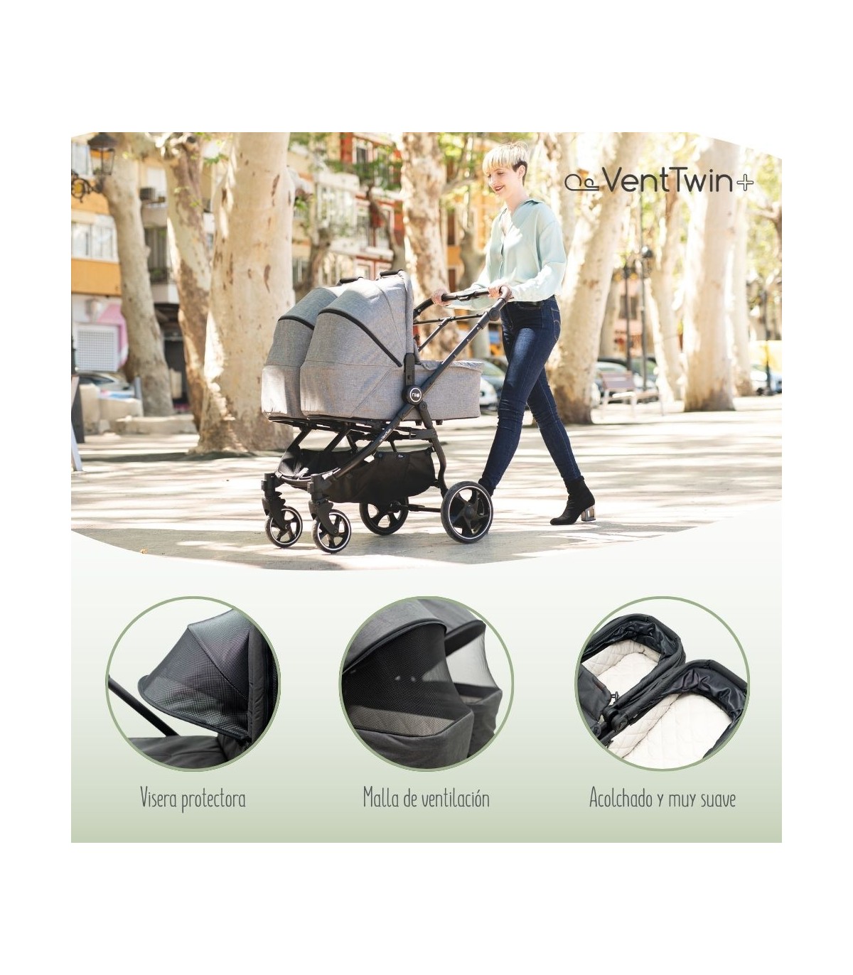 The VentTwin+ carrycot is the ideal option for your twin stroller. Designed with lightness, this carrycot has a very low weight that makes it easy to handle. It has a removable hood that offers UPF 50+ protection against UV rays, and a ventilation window to keep your little ones comfortable at all times.