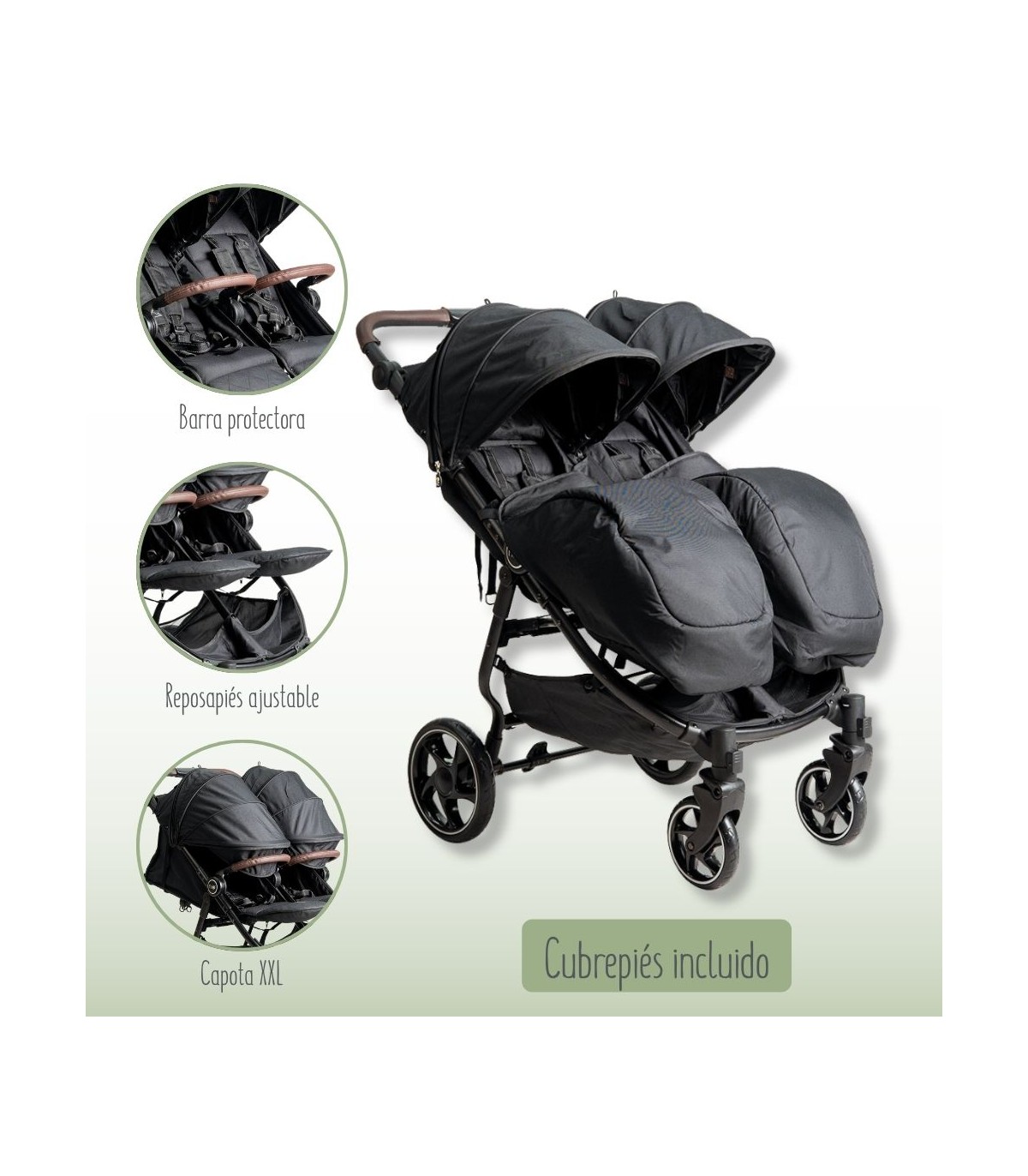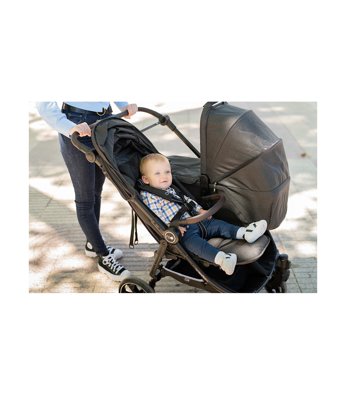 The VentTwin+ Niu twin stroller has been designed with the comfort and practicality of families with babies with a small age difference, twins or twins, in mind. With significant improvements that make everyday life easier, this improved version offers innovative features to make walking with your little ones easier and more pleasant. Discover the new VentTwin+ Niu and experience the quality and convenience that your family deserves!