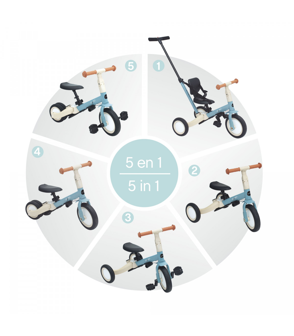 This tricycle will transform and adapt as the boy or girl grows. From tricycle to bicycle with or without pedals, going through all the models necessary for the adaptation of the child to this means of transport.