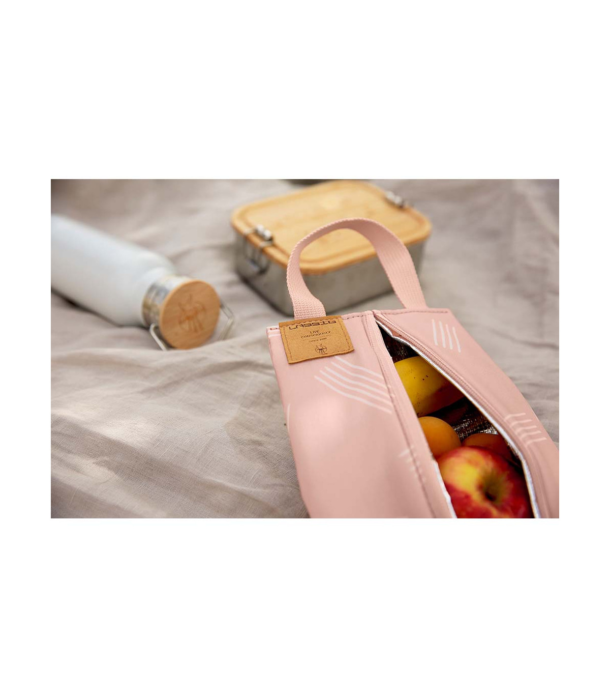 The LÄSSIG cool box with insulated storage keeps bottles, snacks and the like reliably hot or cold when you're on the go.
