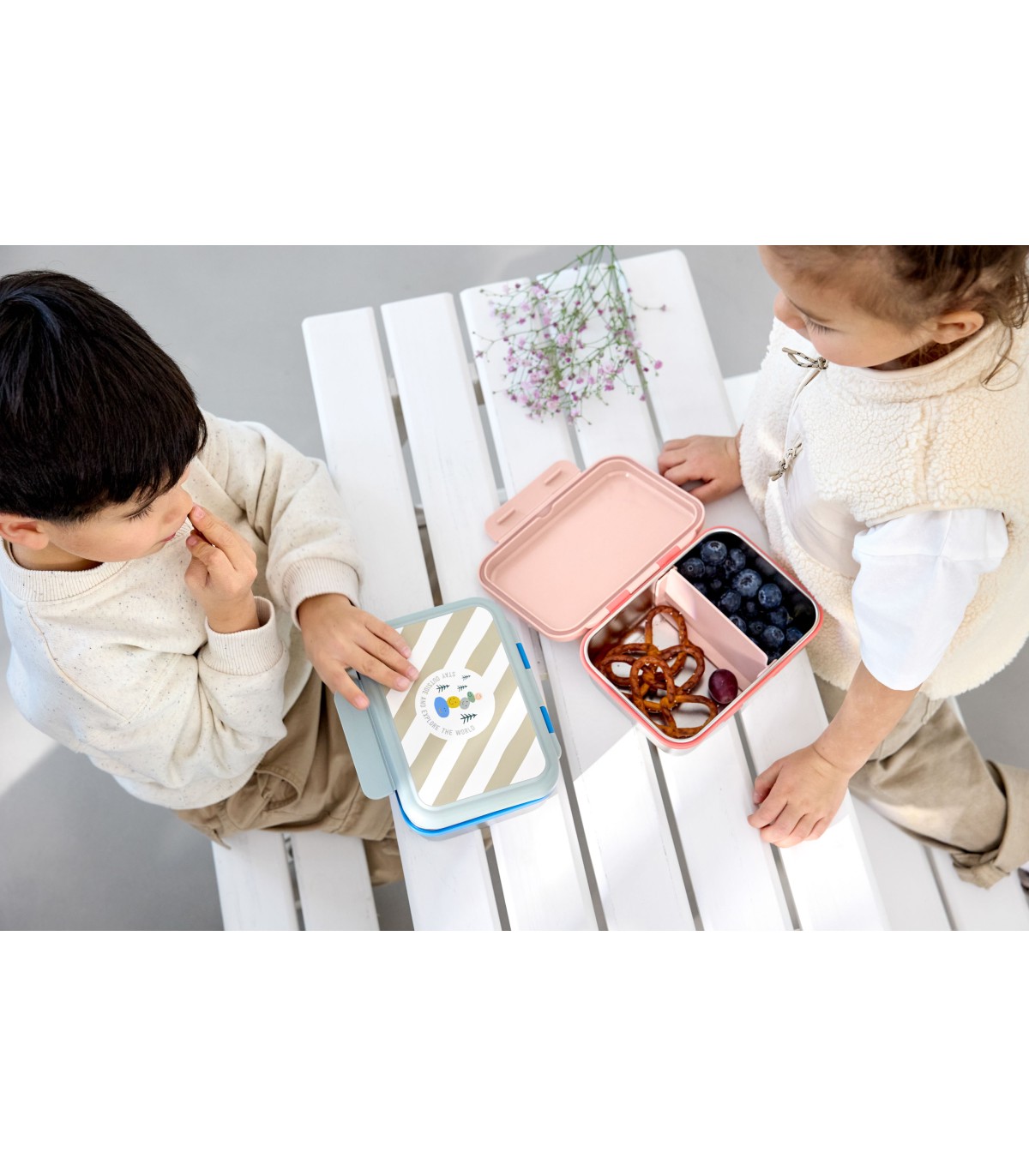 Fiambrera de acero inoxidable robusta y sin BPA para niños, irrompible y apta para lavavajillas. Con la separación flexible y el anillo de silicona en la tapa, mantiene el snack fresco durante mucho tiempo. Los mejores materiales para llevar el almuerzo o la comida del peque y conservar sus propiedades.