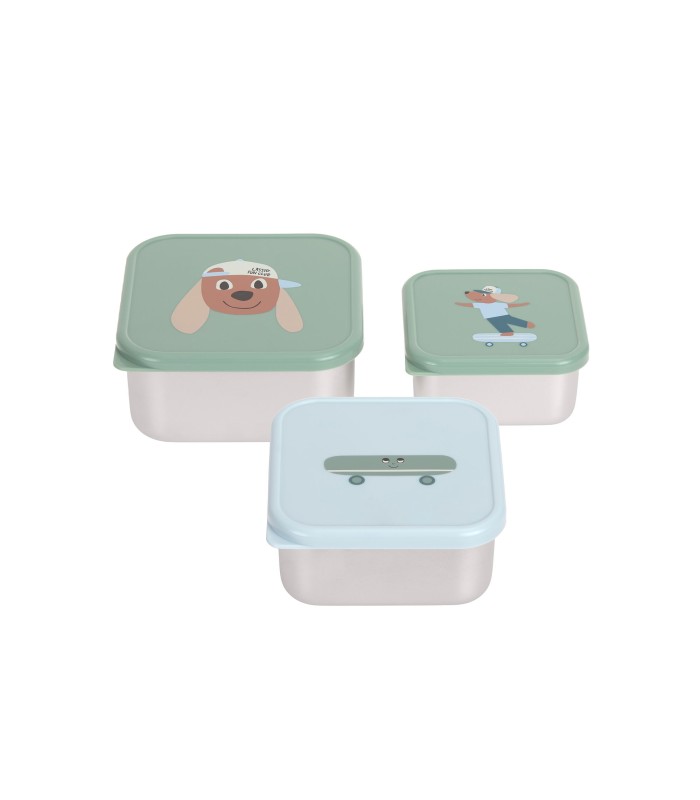 Juego de fiambreras de acero inoxidable de varios tamaños que mantiene fresca su fruta o verdura. Son aptos para lavavajillas y están libres de BPA.