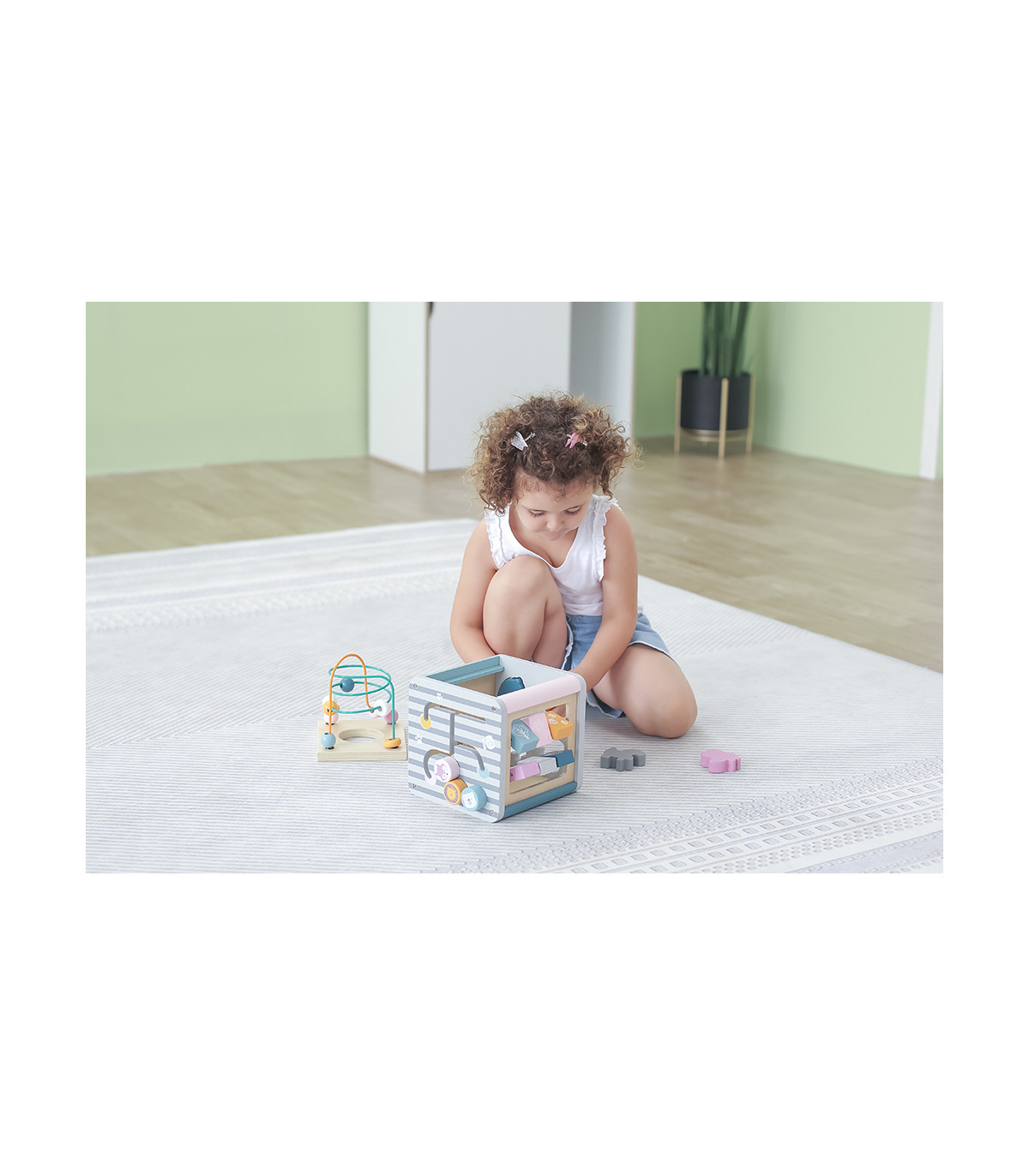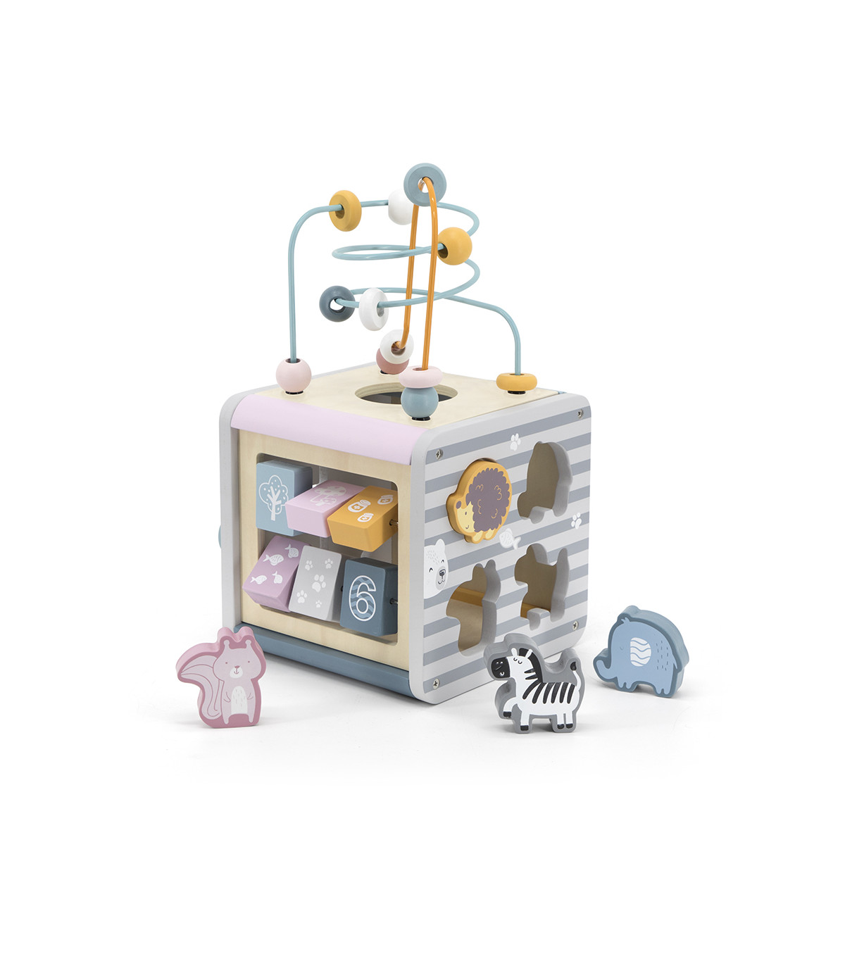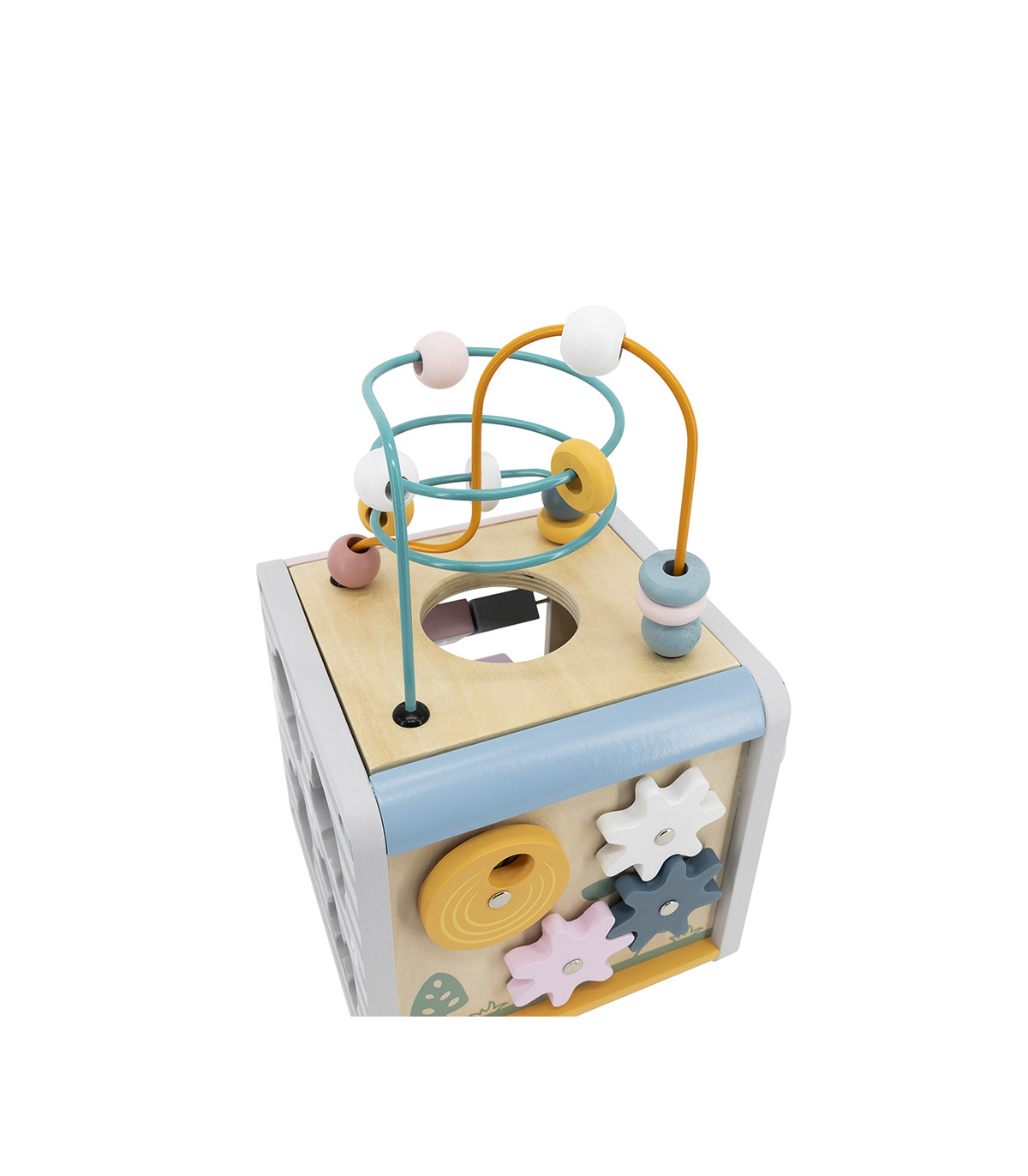 Este juguete de actividades ofrece cinco funciones distintas: cuentas de alambre, laberinto de pistas, giro de engranajes y conteo de números, y garantiza horas de diversión y entretenimiento para los niños.