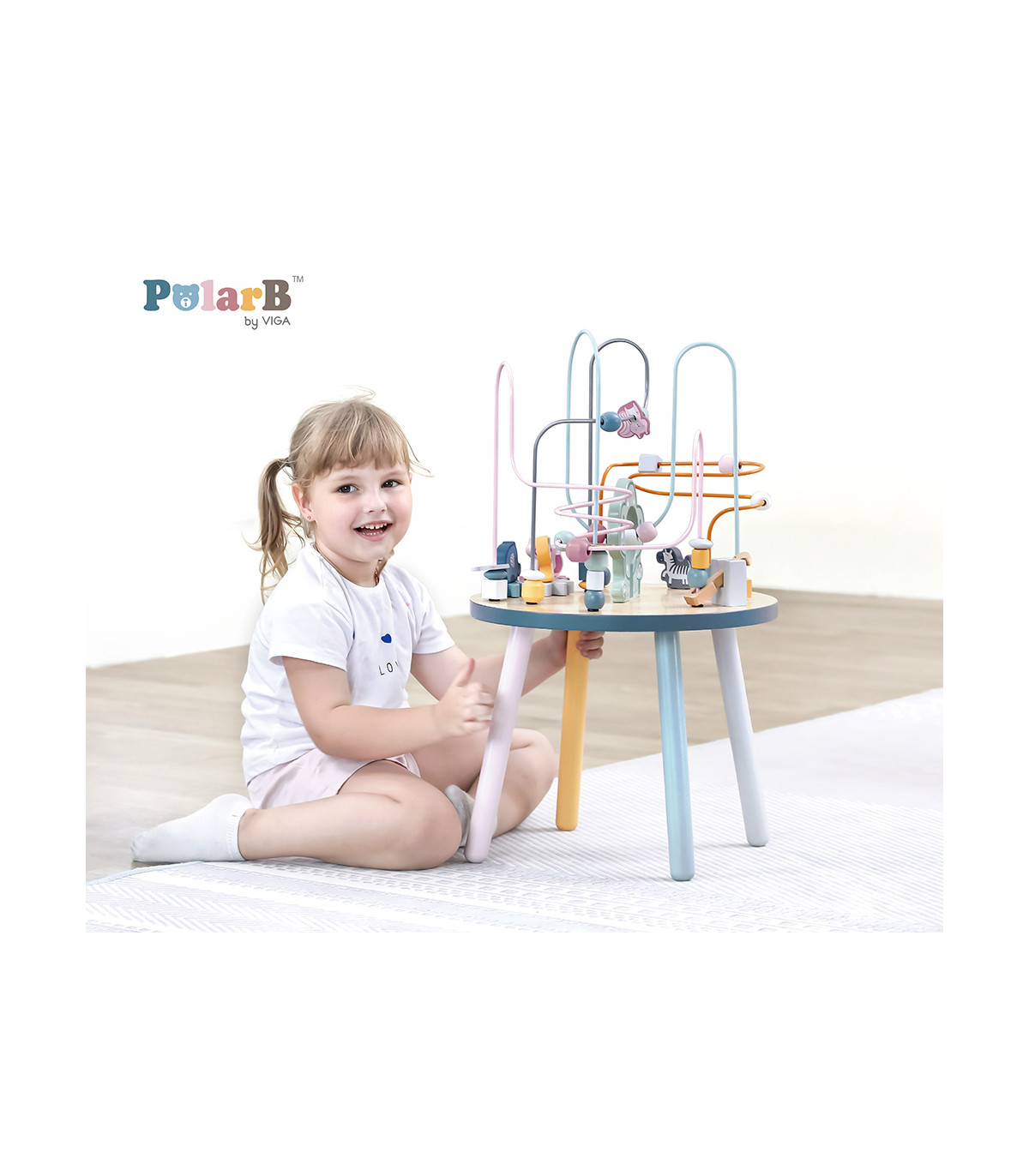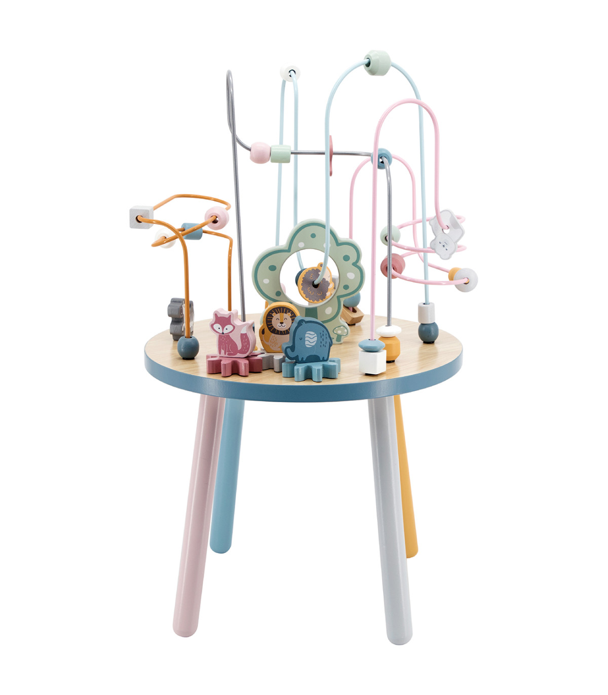 El laberinto de alambre de la mesa de juego incluye cuentas, bloques de madera, engranajes y figuras de animales que viajarán por la montaña rusa entreteniendo a los más pequeños durante horas. Además de divertirse, los más pequeños desarrollarán el pensamiento, la imaginación, la corrdinación mano-ojo, el bienestar emocional y aprenderán los colores y las formas.