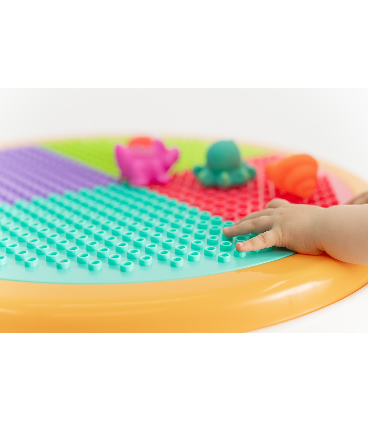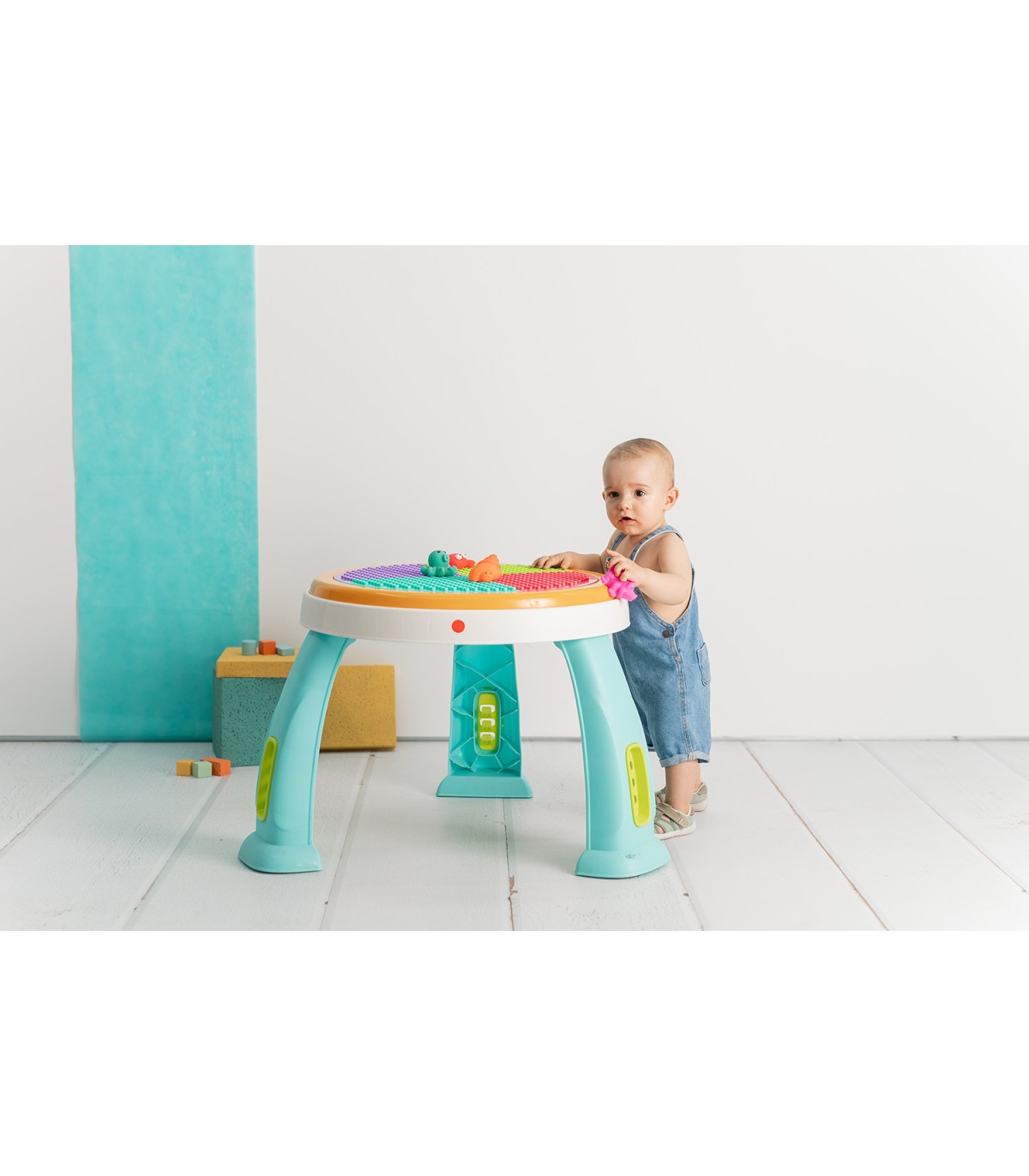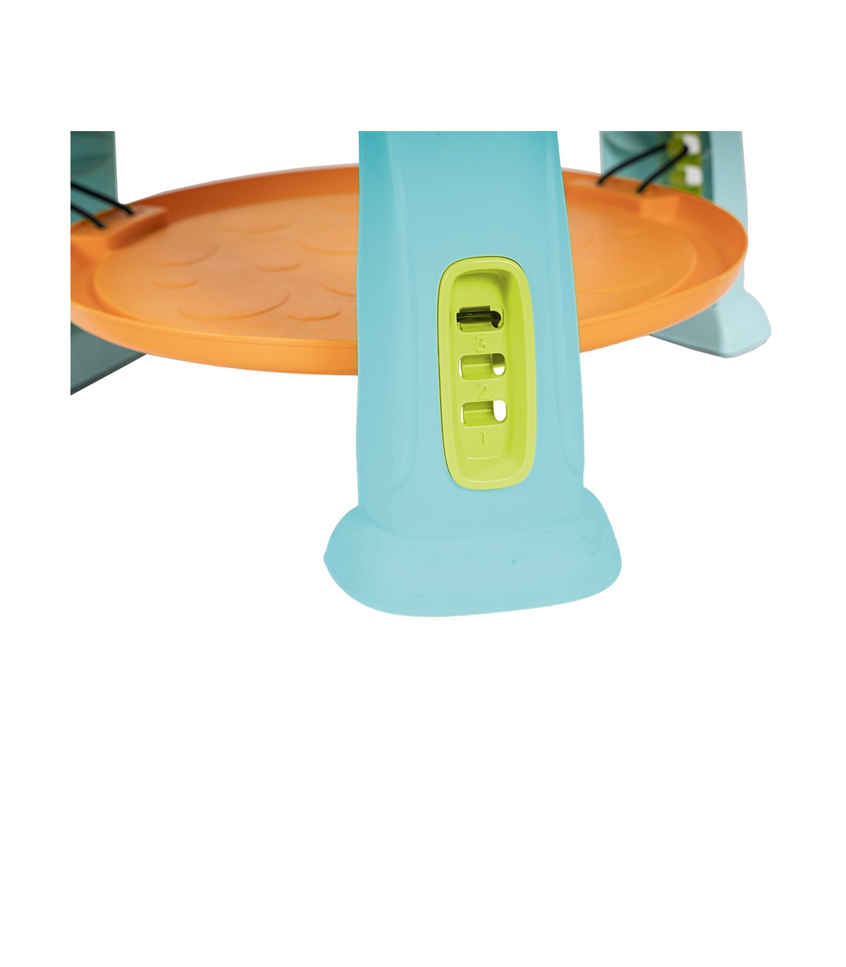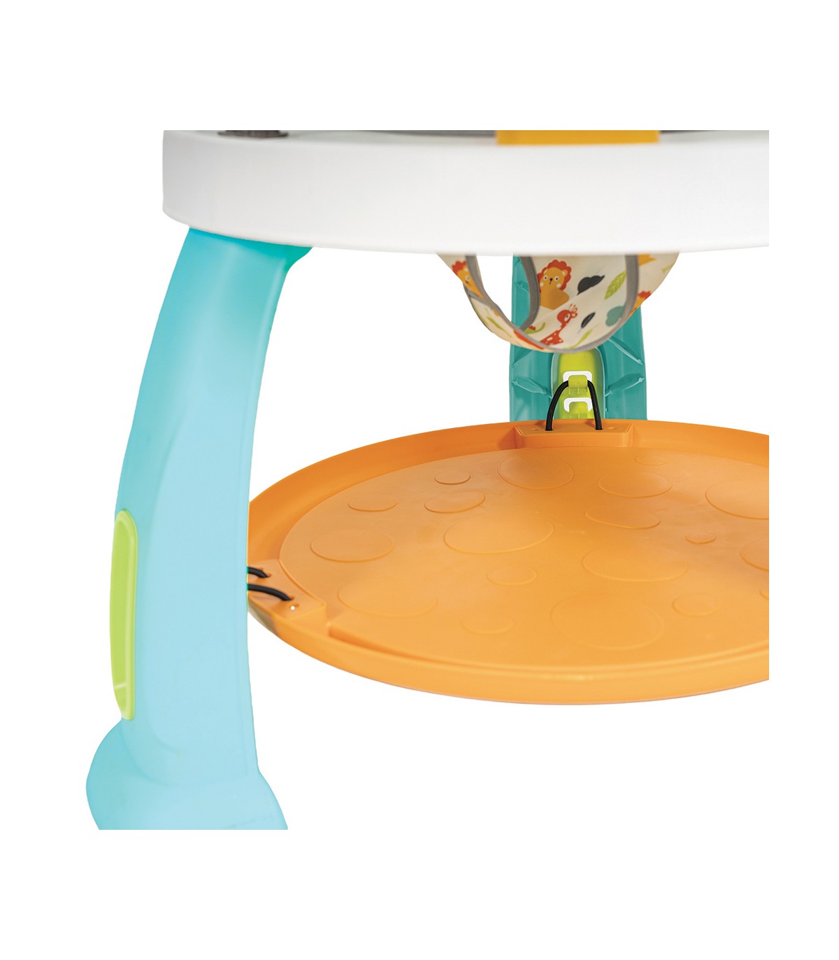 El Centro de Actividades 2 en 1 que crece con tu bebé: combina un saltador con rebote para fortalecer sus piernas y una mesa de juegos sensorial giratoria 360º.