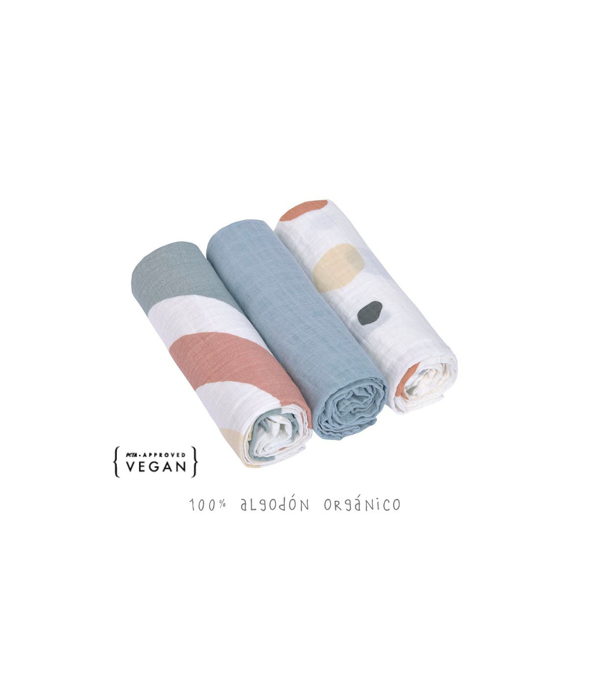 Suaves muselinas de una sola capa 100% algodón. Perfectas para cuidar la piel de los recién nacidos.