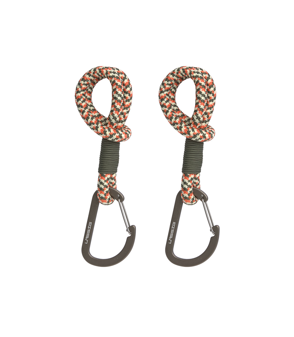 El set de dos ganchos MIX de Lässig, fabricados con cuerda y mosquetones de metal, facilitan la sujeción de bolsos, mochilas o bolsas de la compra al carrito de bebé. El cordón flexible de hilo reciclado, permite ajustarlo de manera variable al grosor del mango. Sus resistentes materiales admiten objetos voluminosos y soportan un peso considerable.