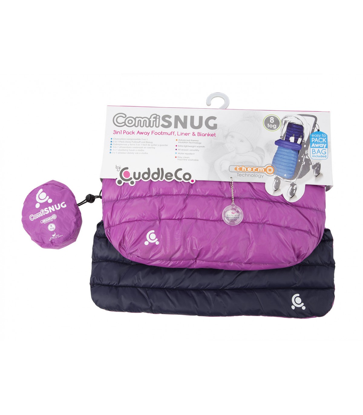 Con este saquito térmico y acolchado el niño estará protegido del viento, frío y lluvia. La pluma simulada y la tecnología térmica lo hacen extremadamente ligero y se almacena en una funda muy compacta.