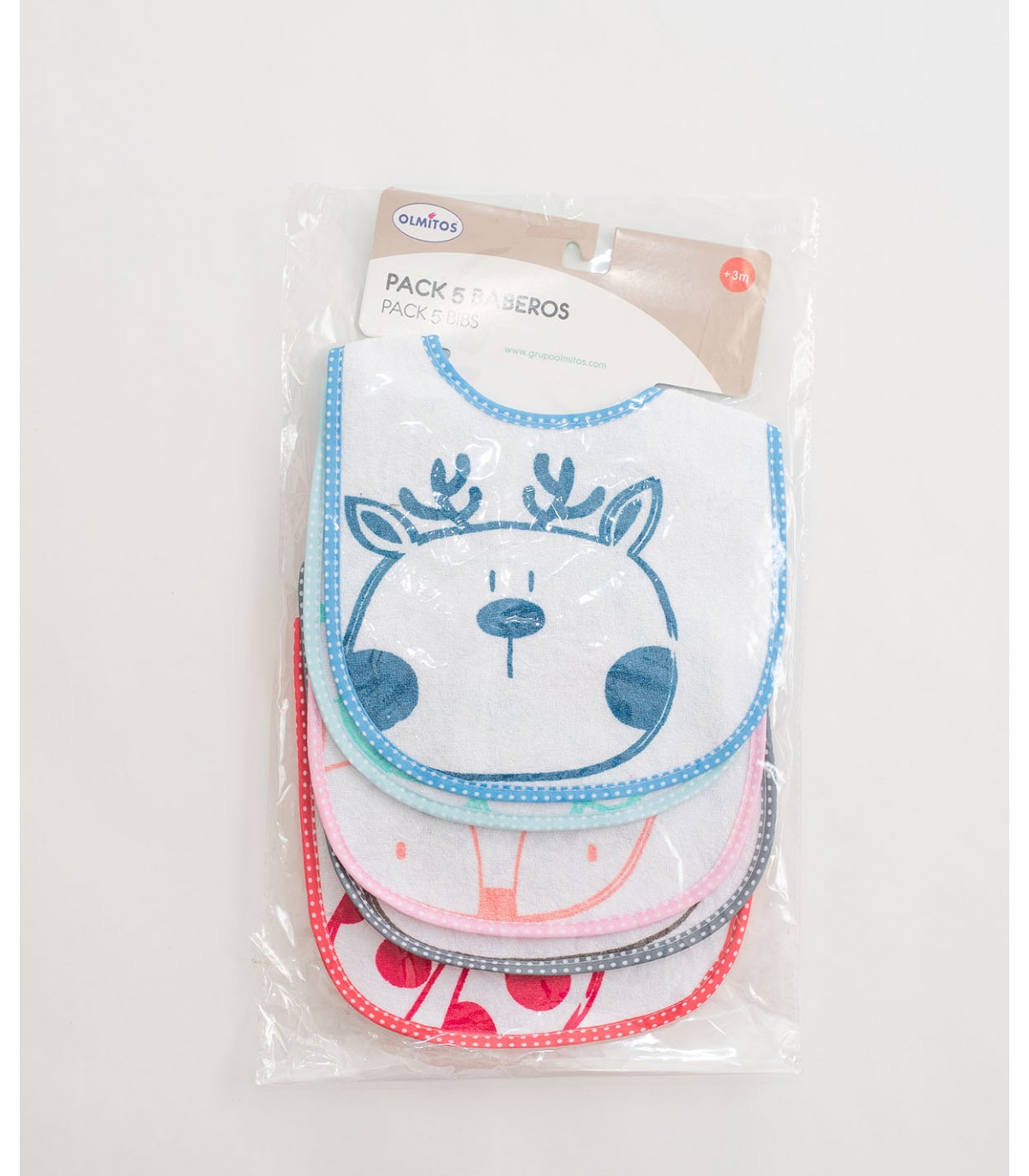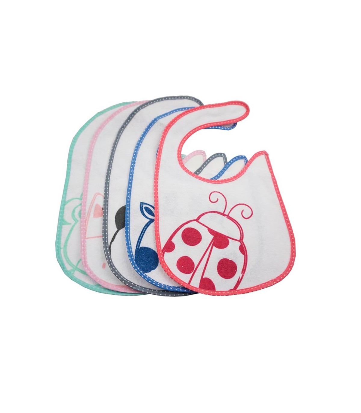 - Conjunto de cinco babadores de algodão.