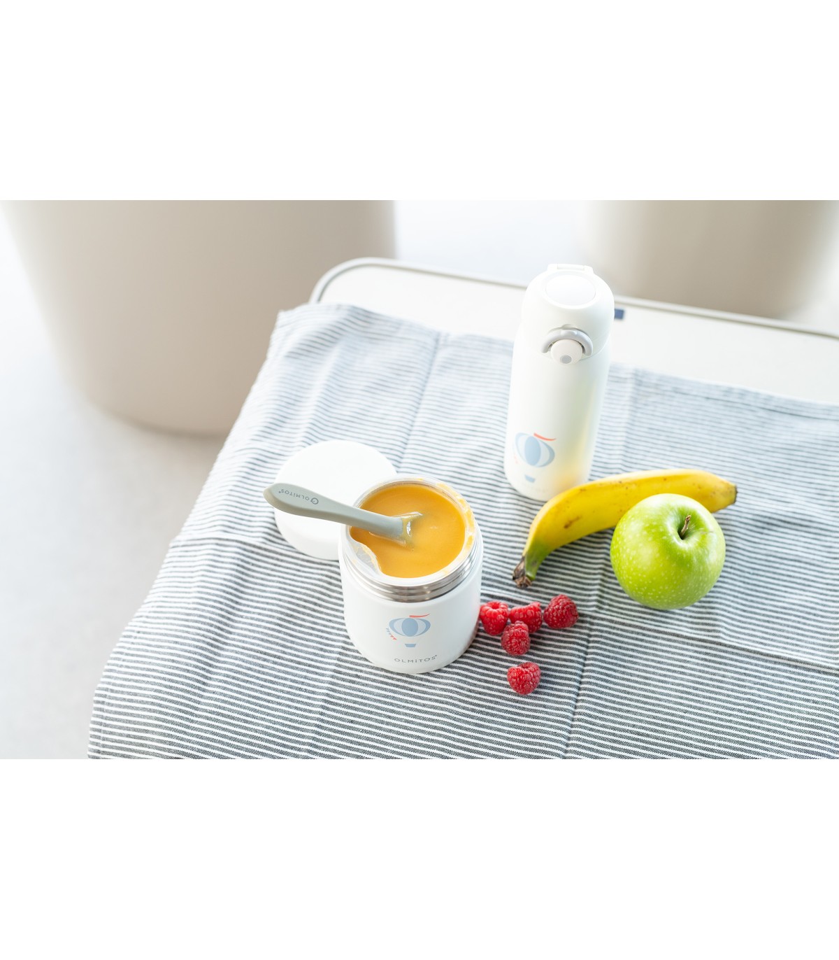 Conjunto com termo para papinha e termo para líquidos combinando. Um conjunto ideal para passeios e saídas com o seu bebé. Também pode oferecê-lo como a combinação perfeita para os biberões nos primeiros meses e as papinhas quando a criança cresce. Escolha entre a variedade de cores!