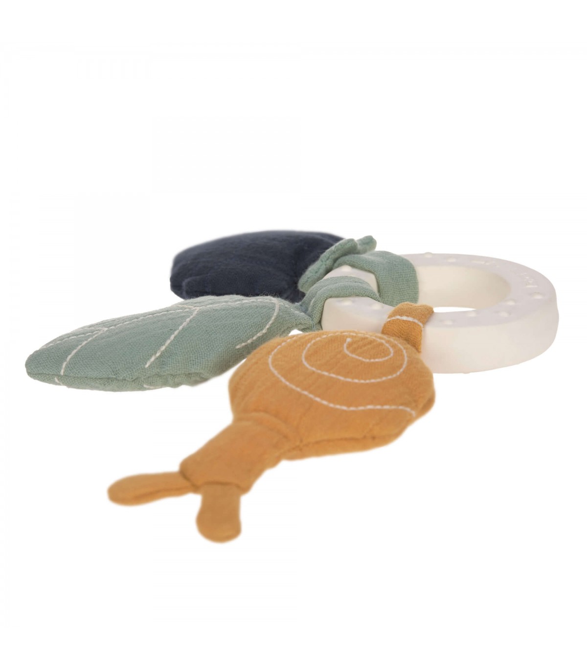 O adorável brinquedo mordedor de borracha natural e os pendentes caracol de algodão orgânico estimulam todos os sentidos do seu bebê e o apoiam na fase de dentição. Adequado para bebês a partir dos 4 meses.