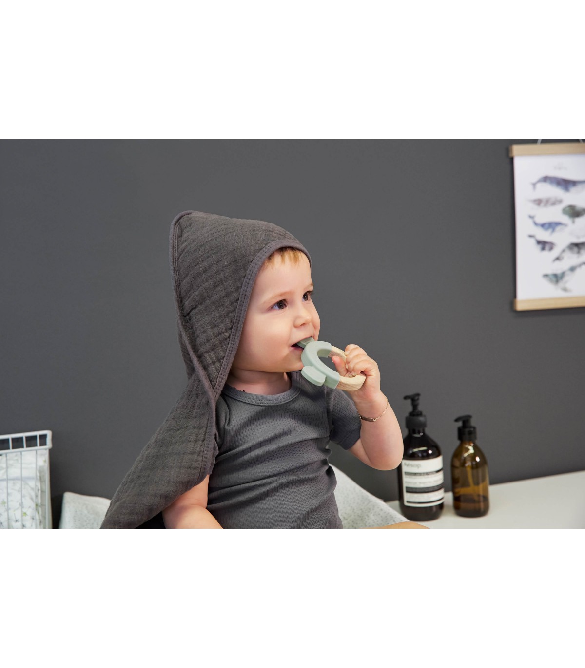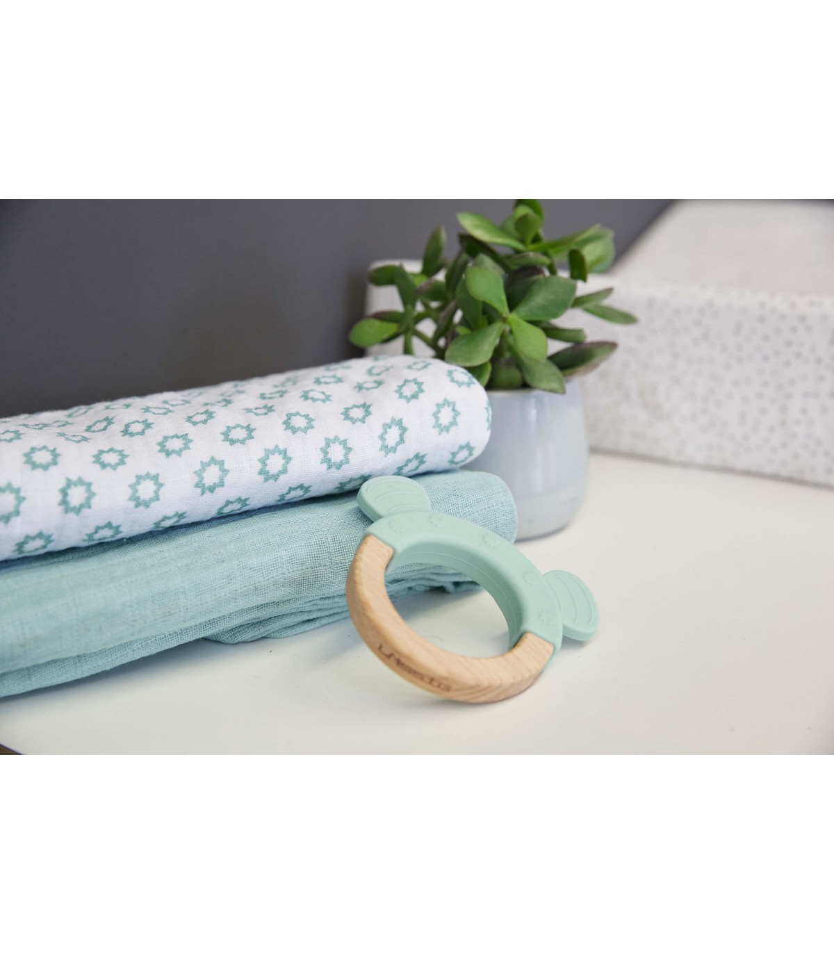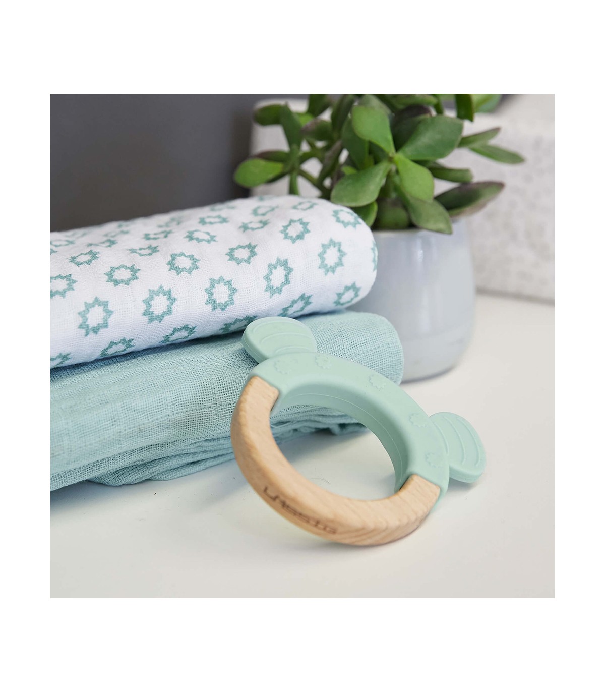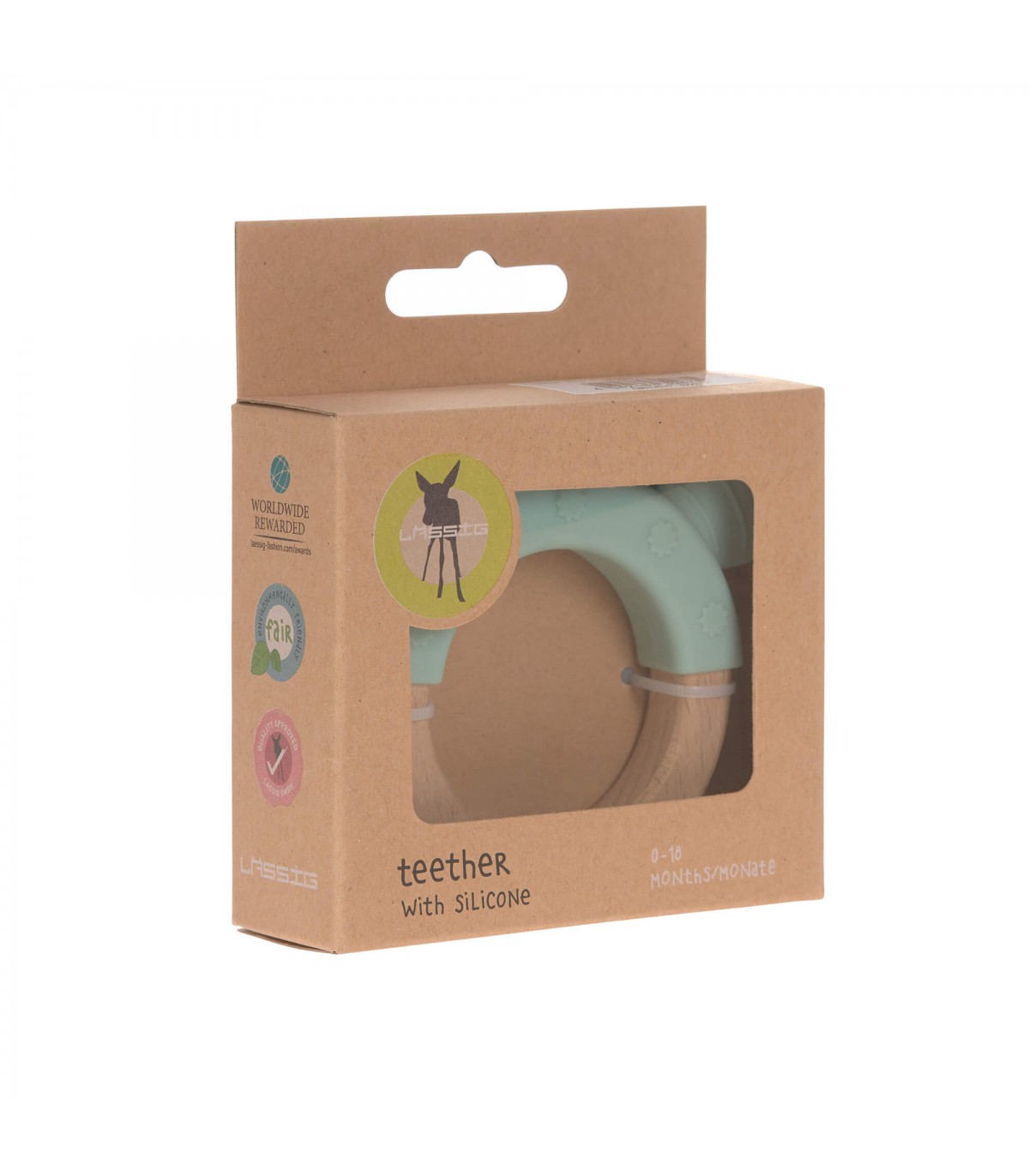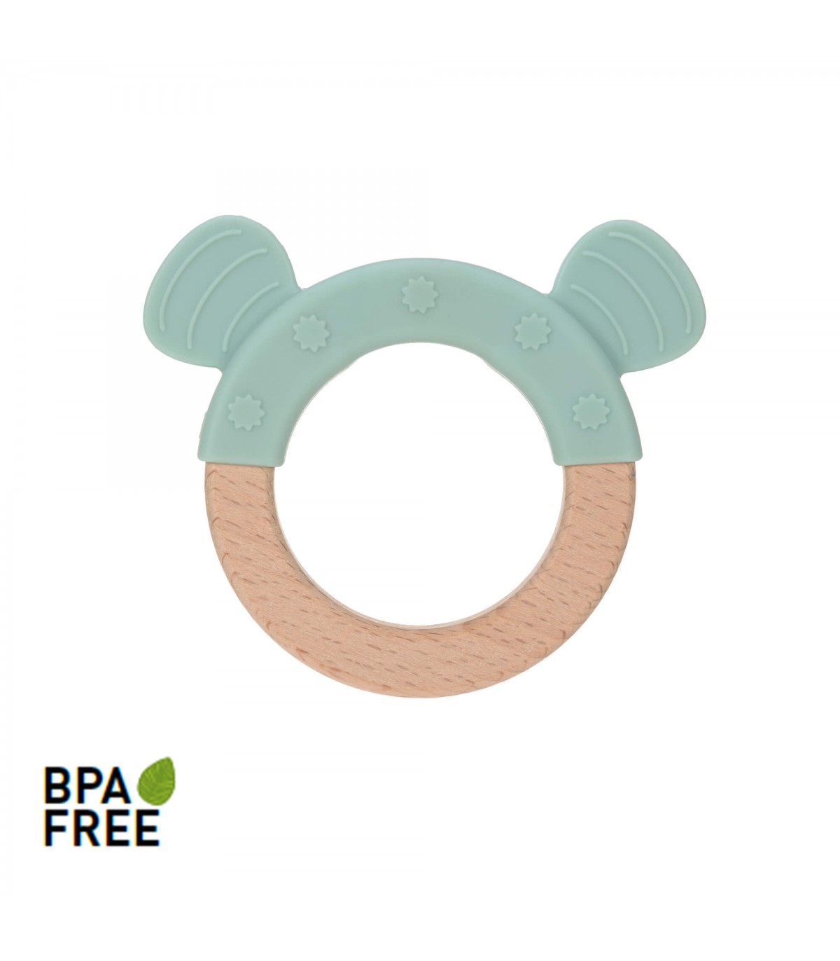 O mordedor de madeira e silicone estimula todos os sentidos do bebé. Brincar e segurar treina as habilidades motoras finas do bebé, enquanto as duas cores diferentes atraem a sua atenção. Quando uma criança move o brinquedo à frente dos olhos, estimula a coordenação olho-mão e aprende a agarrar coisas. O tamanho e o material do brinquedo de agarre são ideais para mãos pequenas.