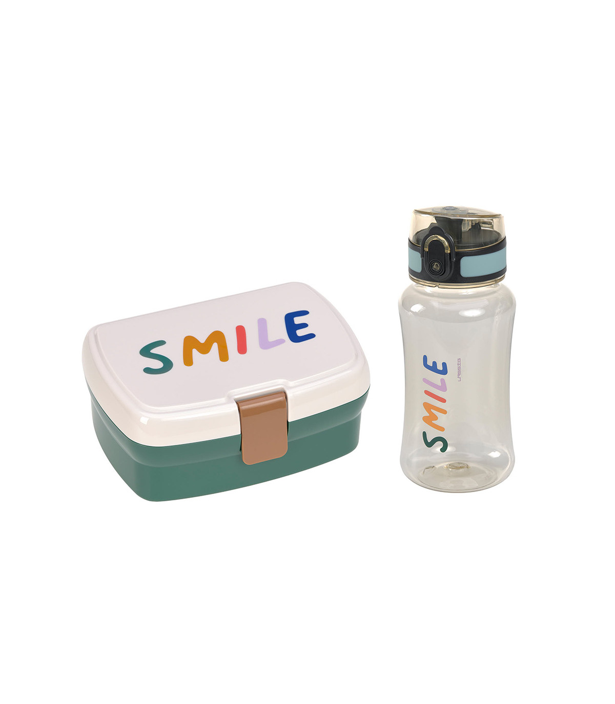 Conjunto de garrafa e lancheira da coleção "About friends", ideal para o pequeno levar o lanche e a água para a escola ou em excursões. A lancheira possui um grande compartimento e uma bandeja com duas separações para armazenar os alimentos. A garrafa possui um design ergonômico de fácil aderência para as mãozinhas do pequeno e é fabricada em tritán, que não deixa odores nem sabores.