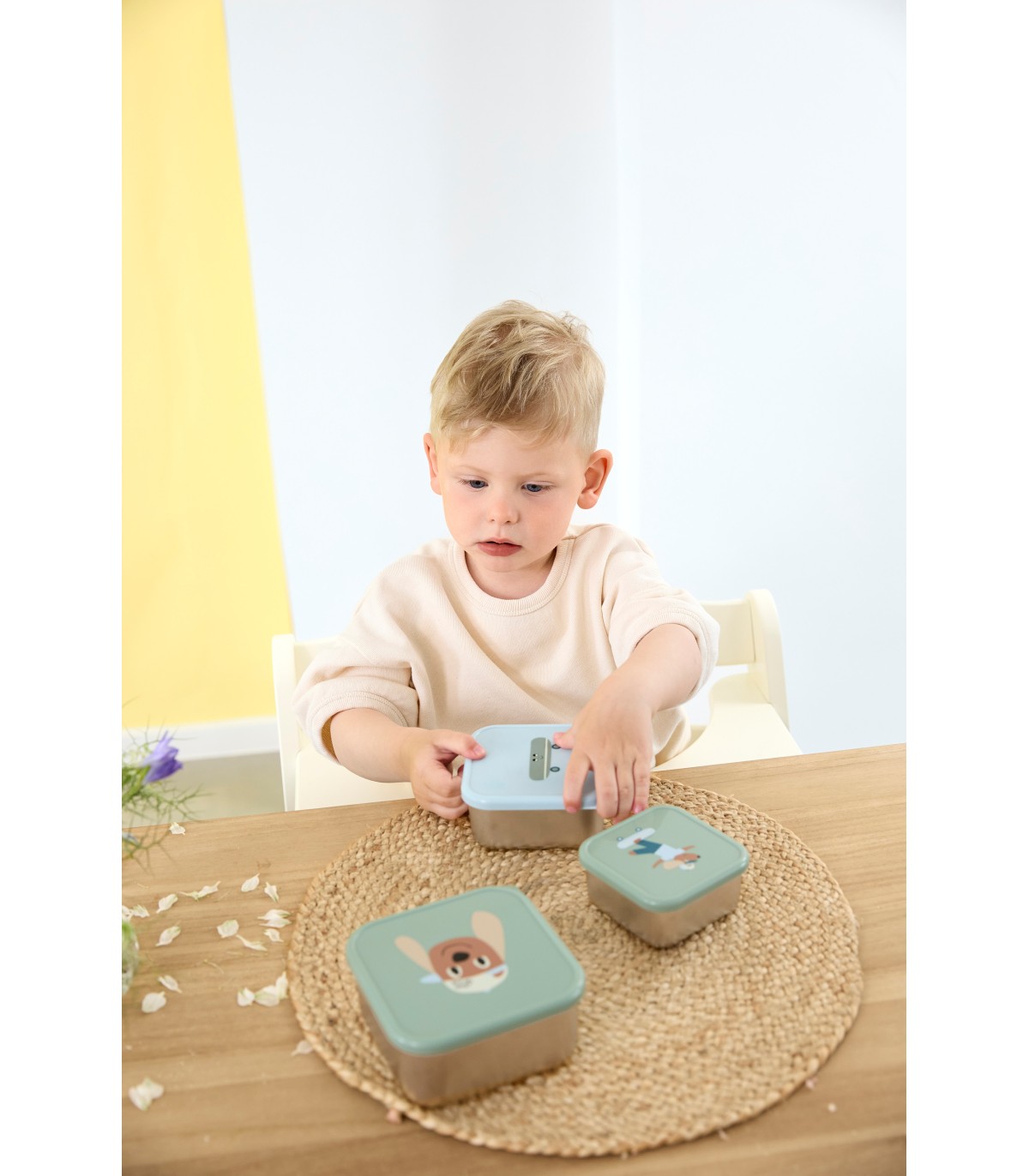 - Recipientes de 100% aço inoxidável e tampa de 100% polipropileno.