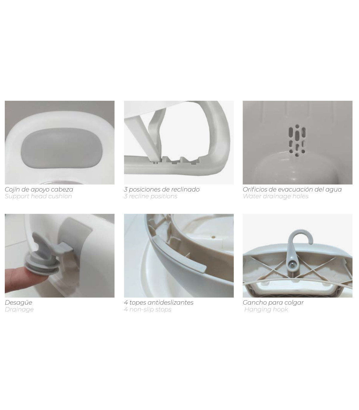 - Almofada de apoio para a cabeça / antiderrapante.