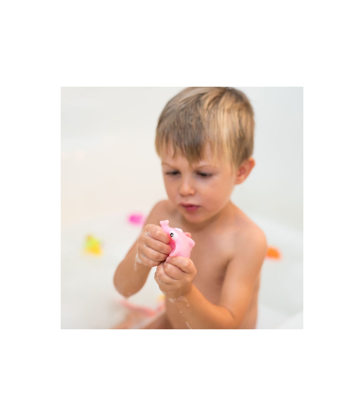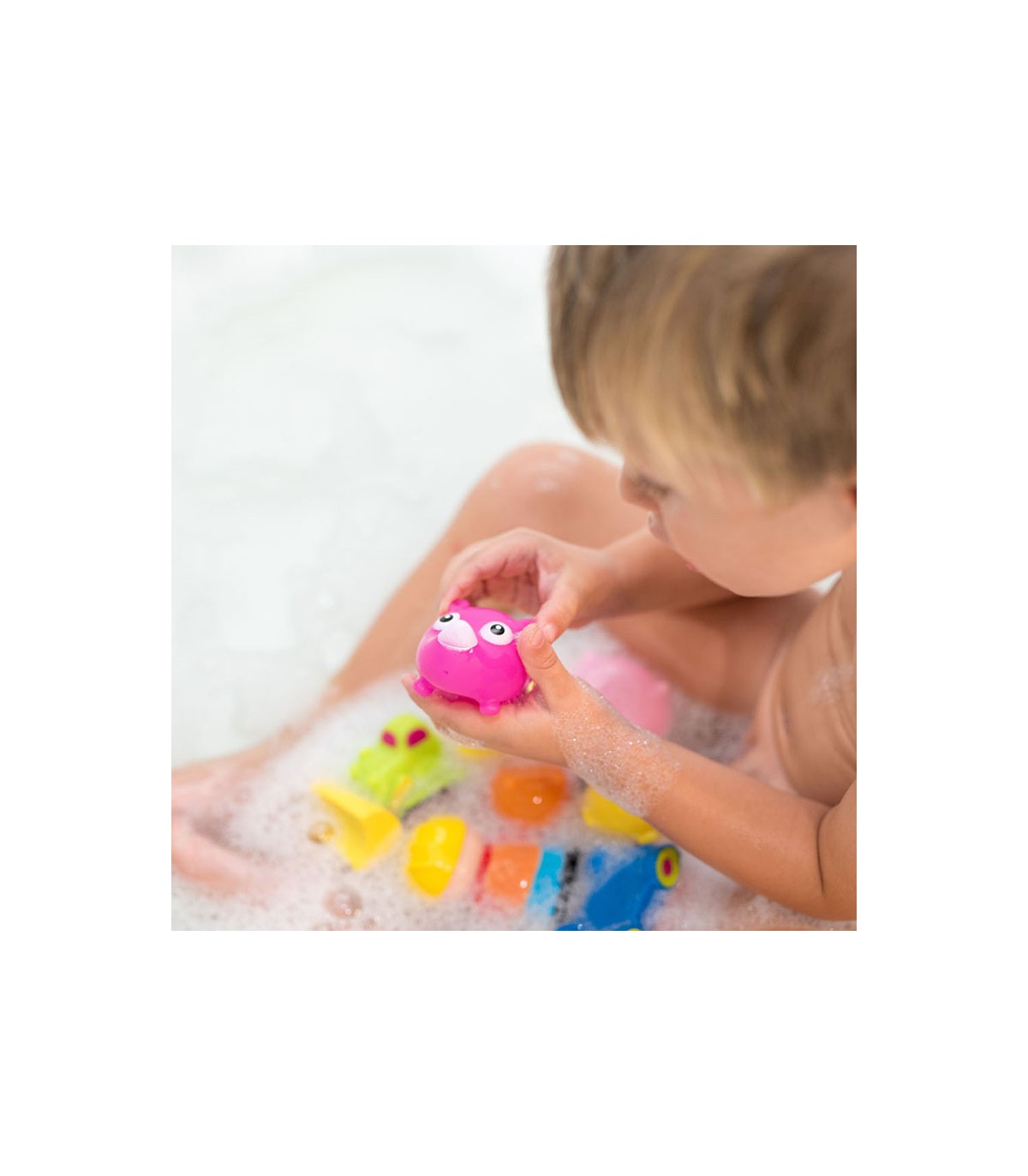 Diversão no banho! Graças às suas cores alegres e formas arredondadas, o bebê desenvolverá suas habilidades cognitivas enquanto se diverte.