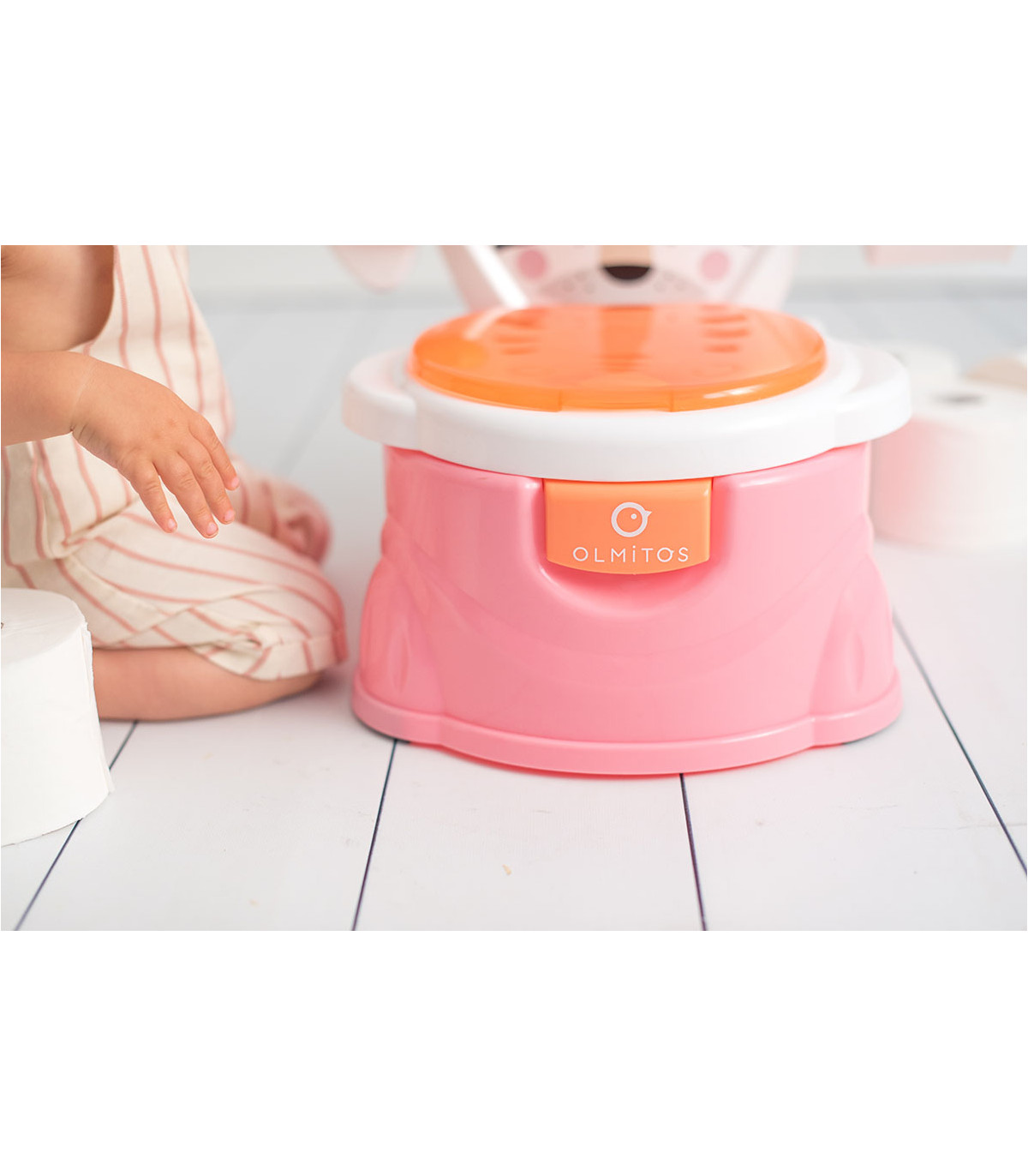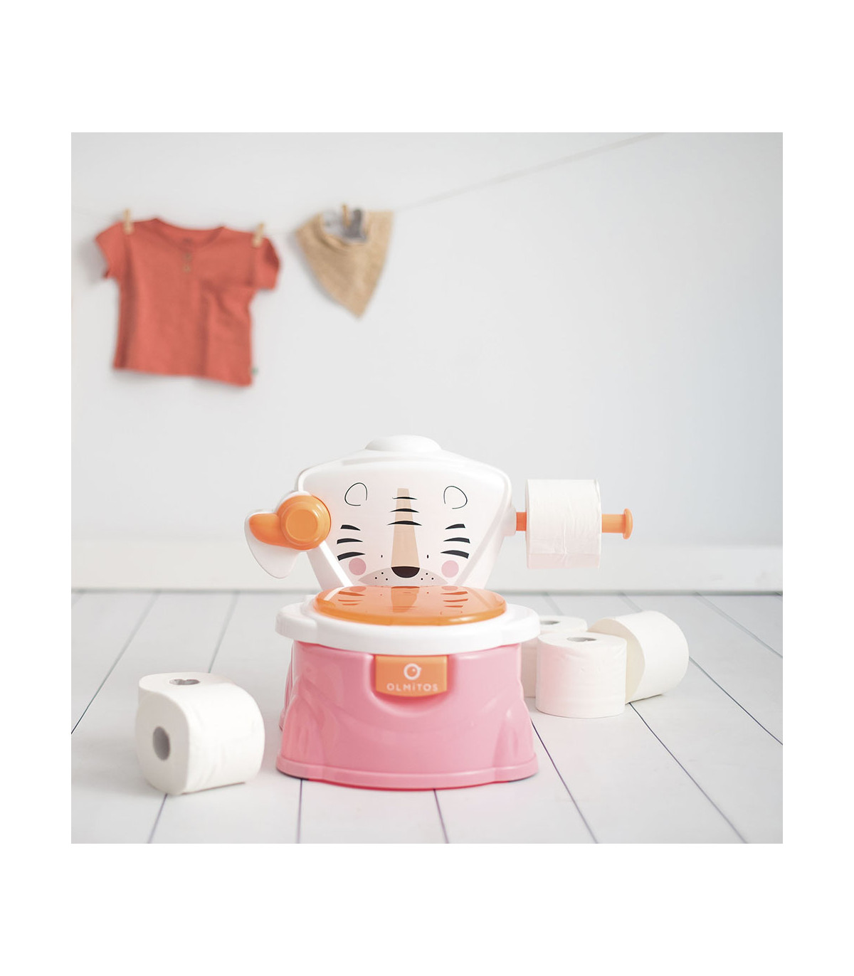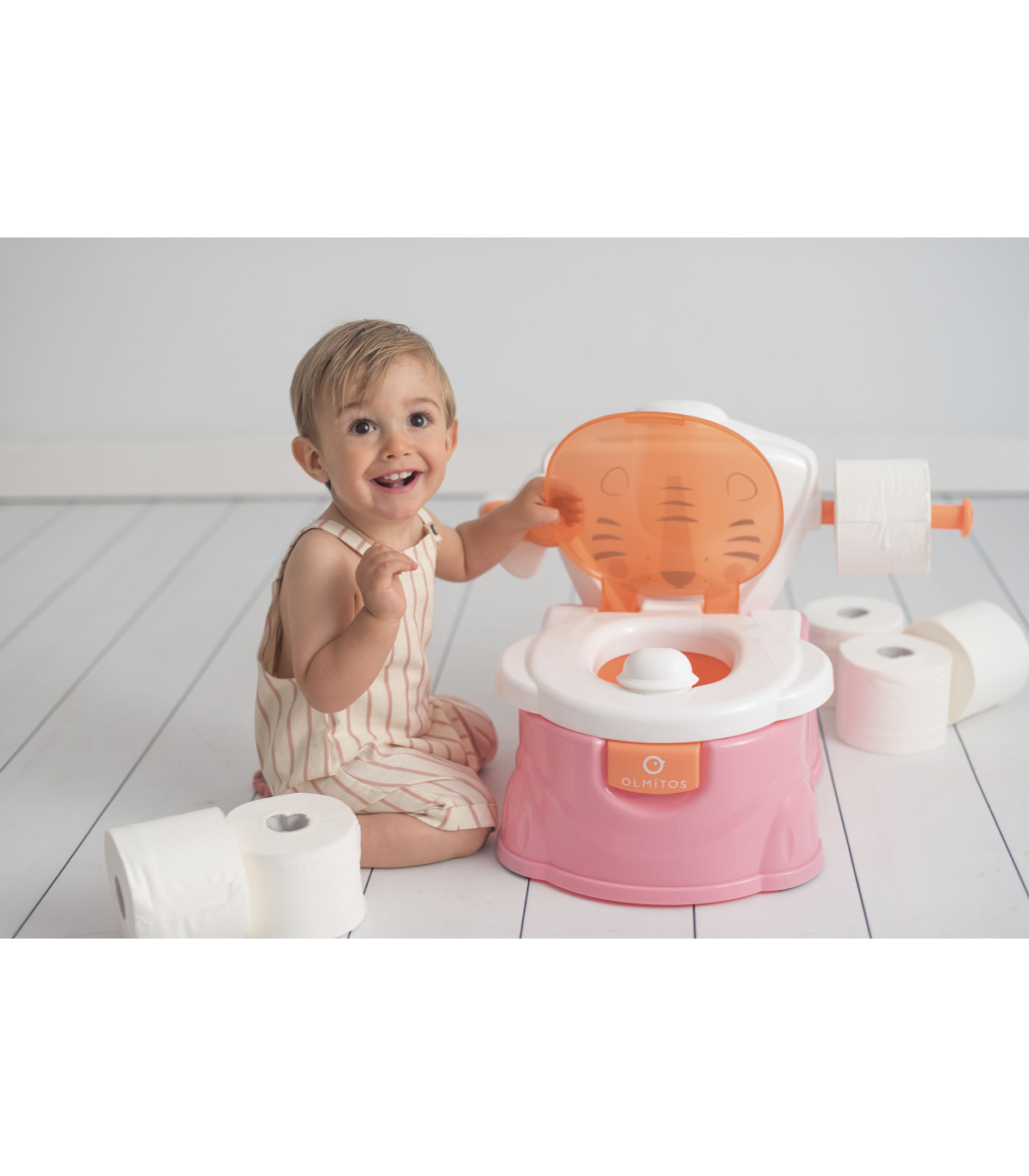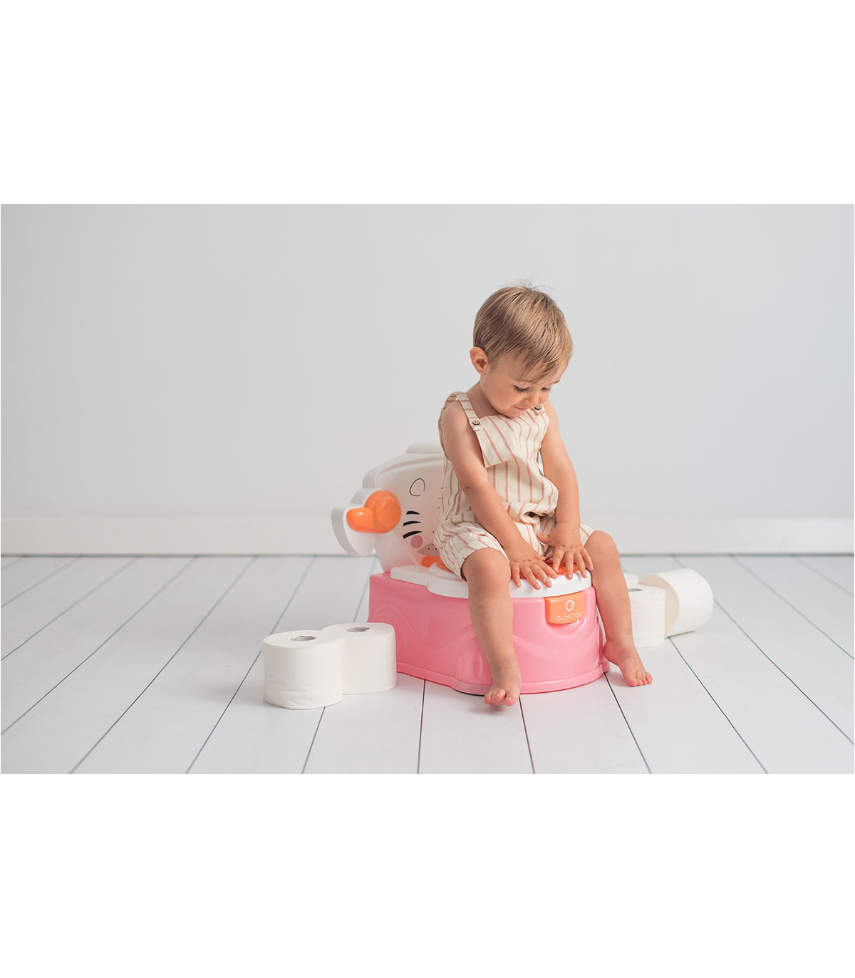 Urinal de design muito divertido e funcional que facilita a aprendizagem do bebê. O copo é removível para facilitar a limpeza e inclui um porta-rolos para o papel. Além disso, pode ser usado como redutor para um WC normal.