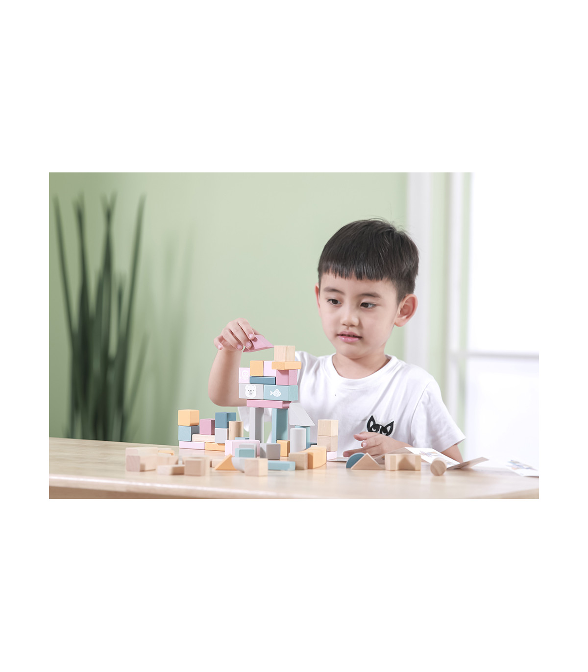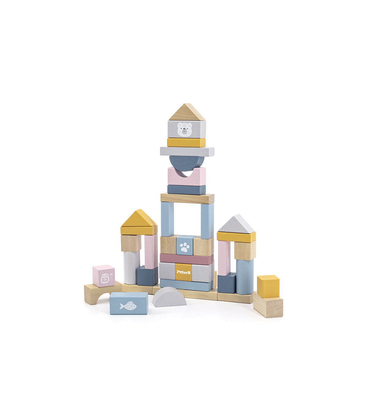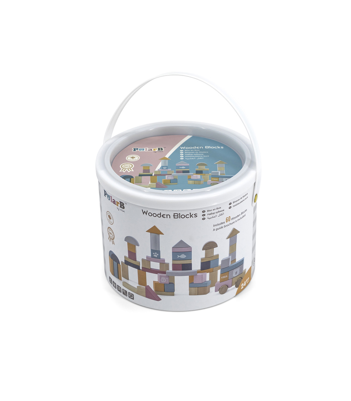 Cubo com 60 blocos de construção de madeira em diferentes formas e cores para os amantes de construções. Ideais para empilhar, construir, equilibrar e aprender formas e cores. Um jogo que estimula a imaginação, a criatividade e o desenvolvimento de habilidades motoras.