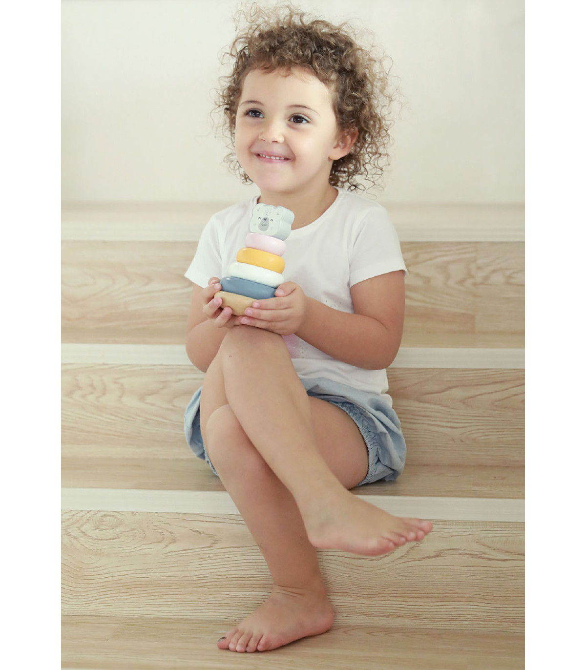 Os brinquedos empilháveis são projetados com discos coloridos de diferentes tamanhos, perfeitos para estimular a capacidade lógica e a coordenação olho-mão do bebê. Possuem formas arredondadas que são fáceis de segurar pelas mãozinhas do bebê. À medida que empilham os discos, eles aprendem sobre a diferença de tamanhos e desenvolvem a habilidade de equilibrar as peças.