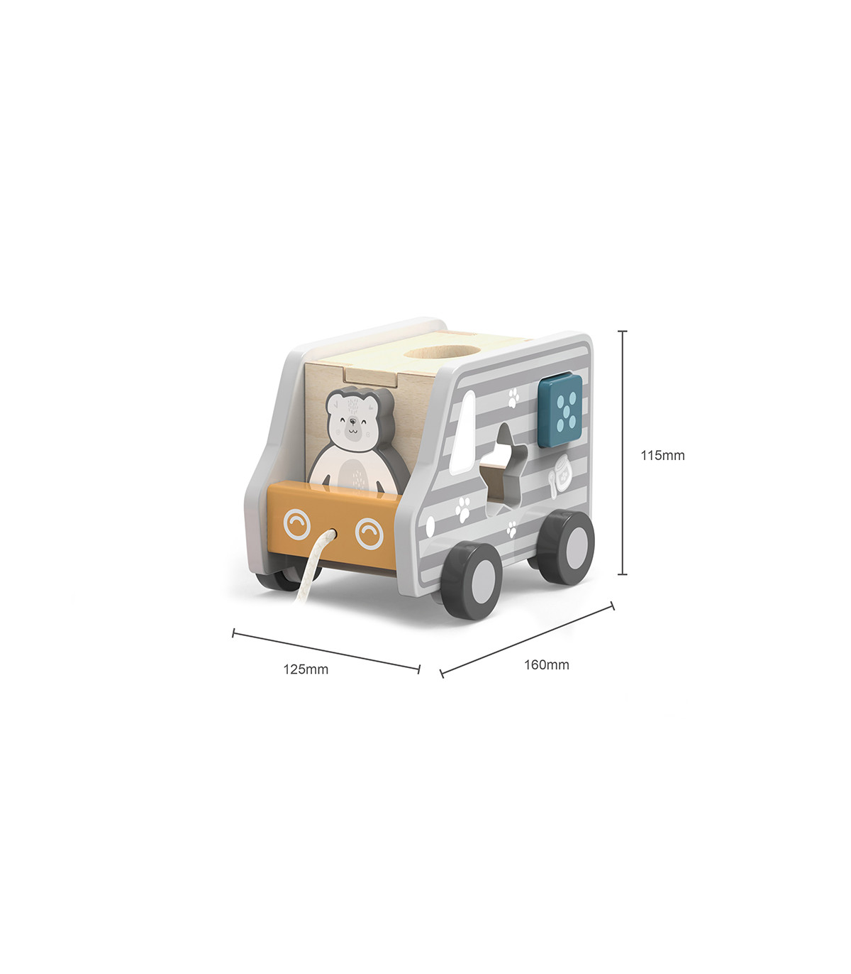 O camião de madeira de arrasto é um brinquedo educativo projetado para que os mais pequenos aprendam as formas e os números enquanto melhoram a destreza manual. Possui um classificador de formas onde as crianças podem colocar as diferentes peças em suas formas correspondentes, e cada uma delas tem um número para que as crianças se familiarizem com os números enquanto brincam. O presente perfeito para incentivar a aprendizagem e o desenvolvimento de habilidades motoras nos mais pequenos.