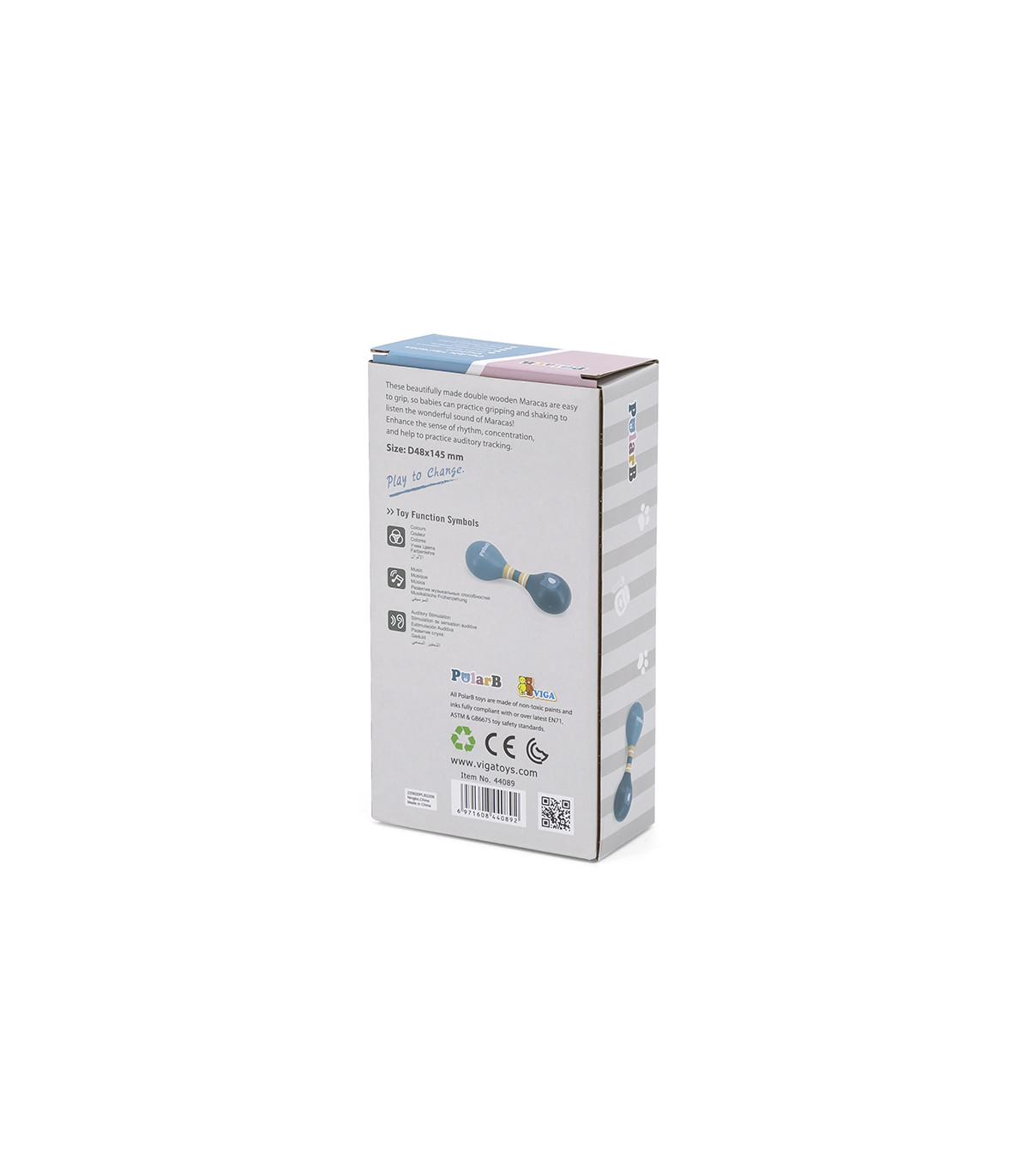 As maracas de madeira são o brinquedo perfeito para introduzir o bebê no mundo da música. Embora seja um brinquedo simples, oferece muitas possibilidades. Seu som suave e agradável ajuda a desenvolver as habilidades auditivas e manuais da criança, assim como o senso de ritmo. Pode ser o primeiro brinquedo que uma criança segura, sacode e rola, o que estimula a começar a segui-lo com os olhos ou através do engatinhar. Seu som delicado não irrita o ouvido do bebê e ajuda a desenvolver a coordenação auditiva, a destreza manual, o senso de ritmo, a imaginação e a coordenação olho-mão.
