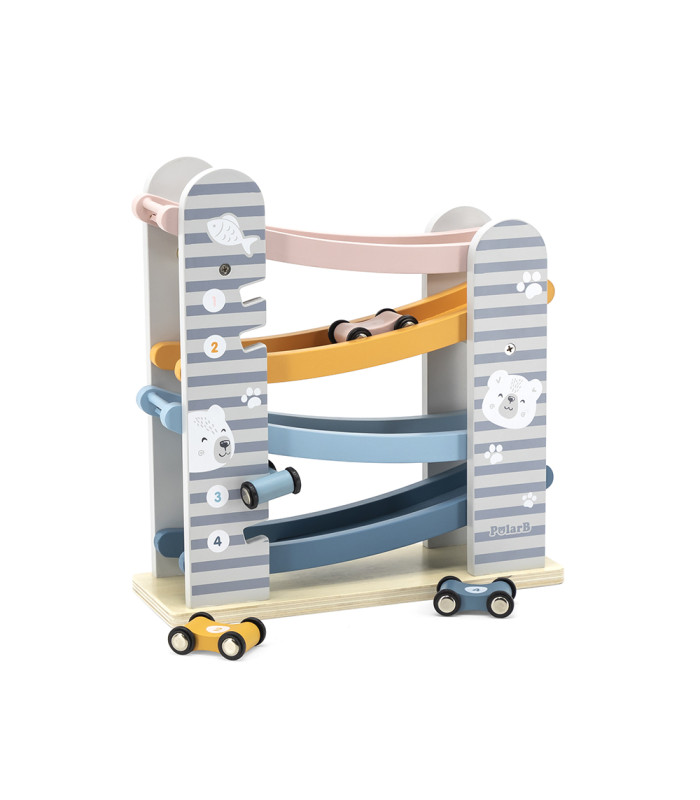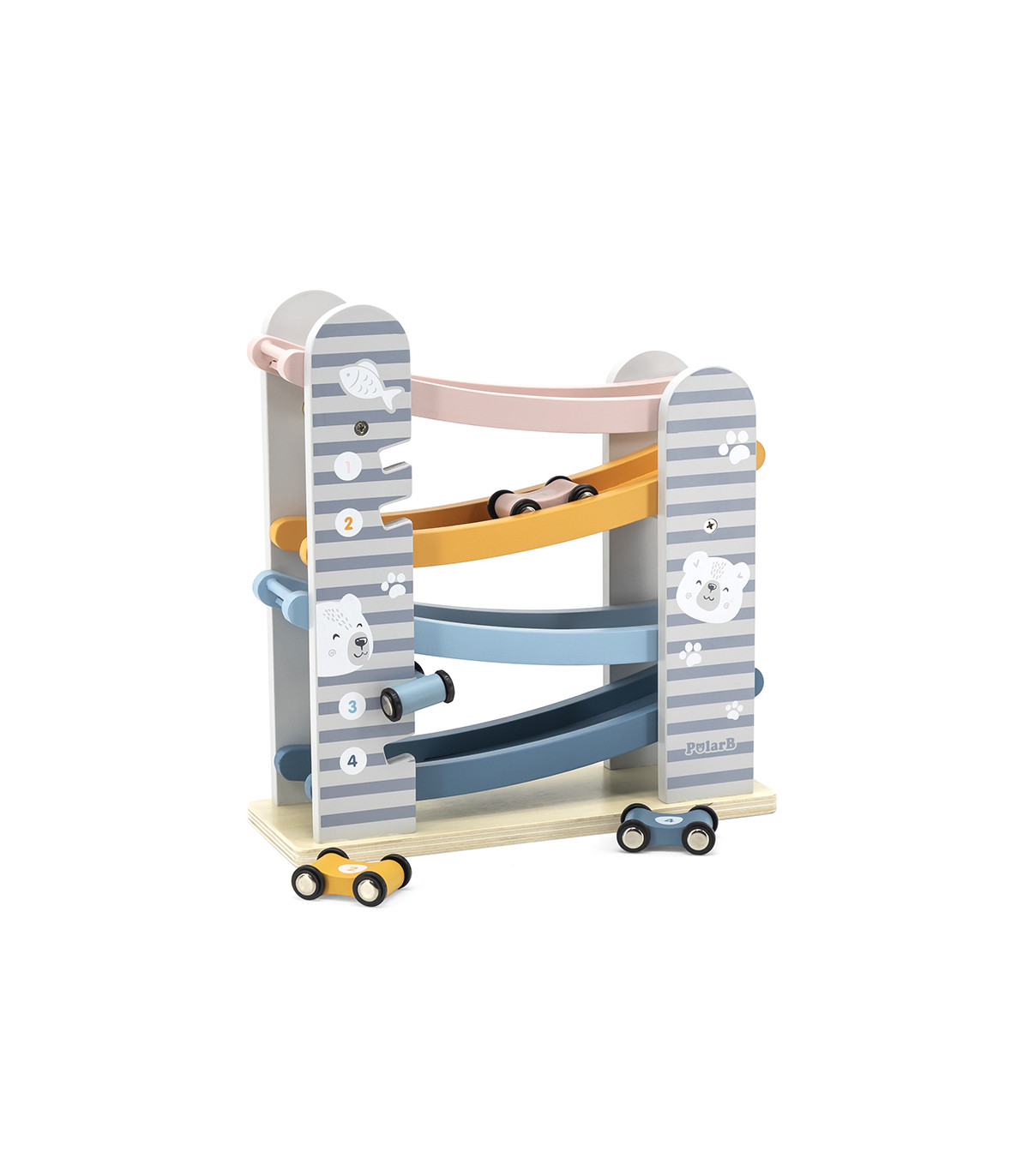 Um conjunto de brinquedos de carrinhos de brincar que inclui 4 mini-carros numerados em diferentes cores. Este produto não só ajuda a desenvolver a capacidade de acompanhamento visual e habilidades motoras da criança, mas também facilita a aprendizagem dos números e a identificação das cores. Também promove hábitos organizados ao incentivar a arrumação dos brinquedos após brincar, graças às ranhuras adicionais projetadas para armazenar os carros de forma segura e evitar que se percam.