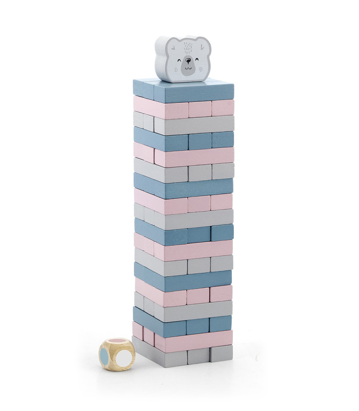 - O jogo consiste em construir uma torre com todas elas e, em seguida, por turnos, cada jogador deve remover com muito cuidado uma das peças dos andares inferiores seguindo a cor indicada pelo dado. O objetivo é manter a torre estável sem cair pelo maior tempo possível.