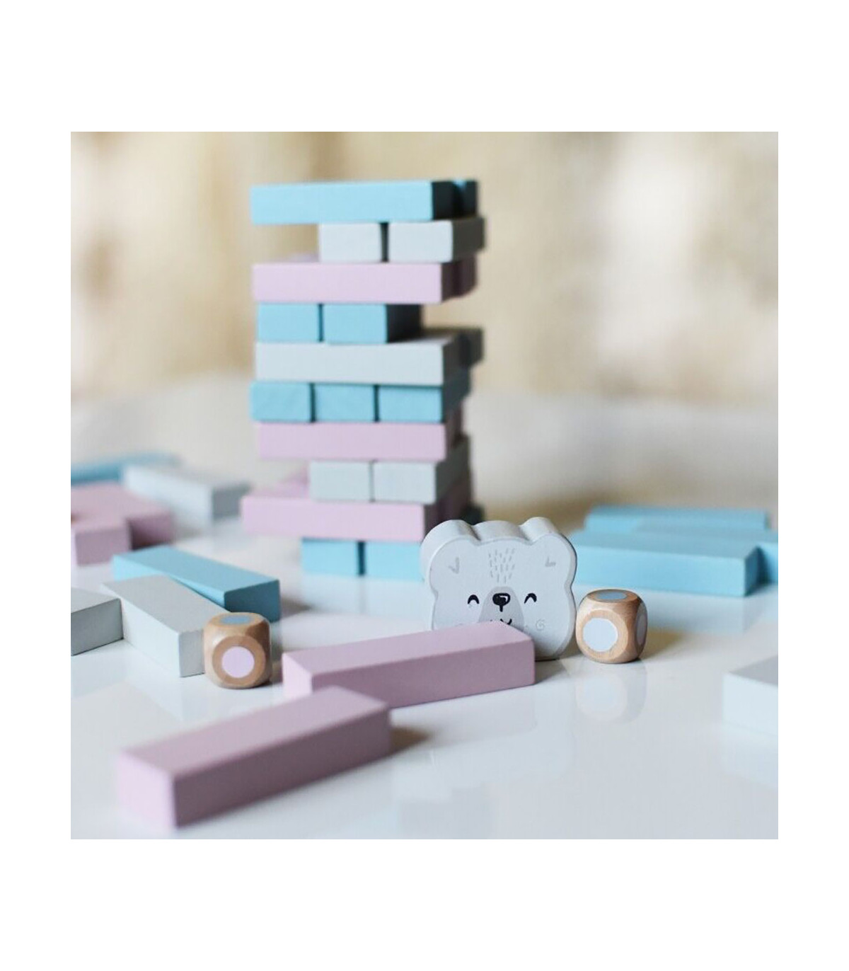 Descubra a diversão e a criatividade com o jogo de blocos de madeira. Torne-se um arquiteto e construa uma torre usando habilidades de equilíbrio e pensamento lógico. Este jogo não só promove a concentração e o equilíbrio, mas também estimula a criatividade e a motricidade fina dos mais pequenos.