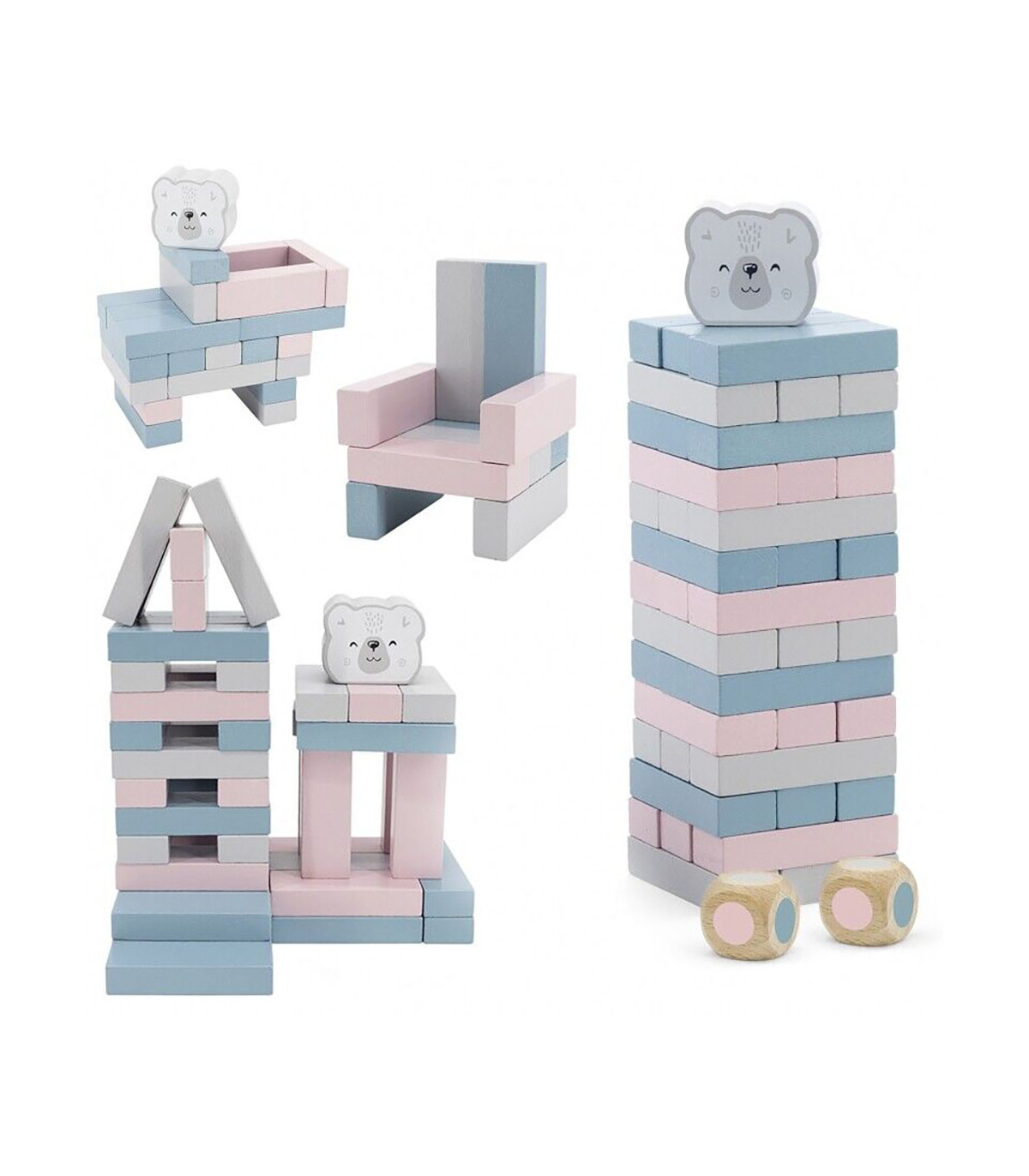 - O conjunto contém: 30 peças, uma cabeça de urso para a parte superior e 2 dados.