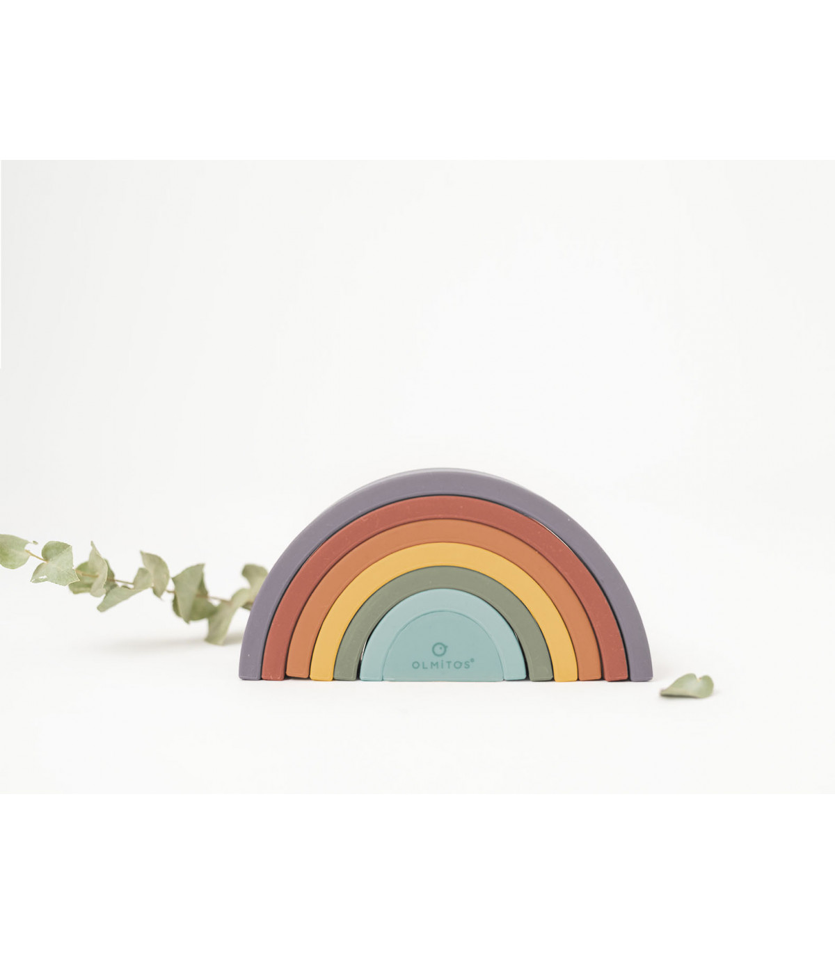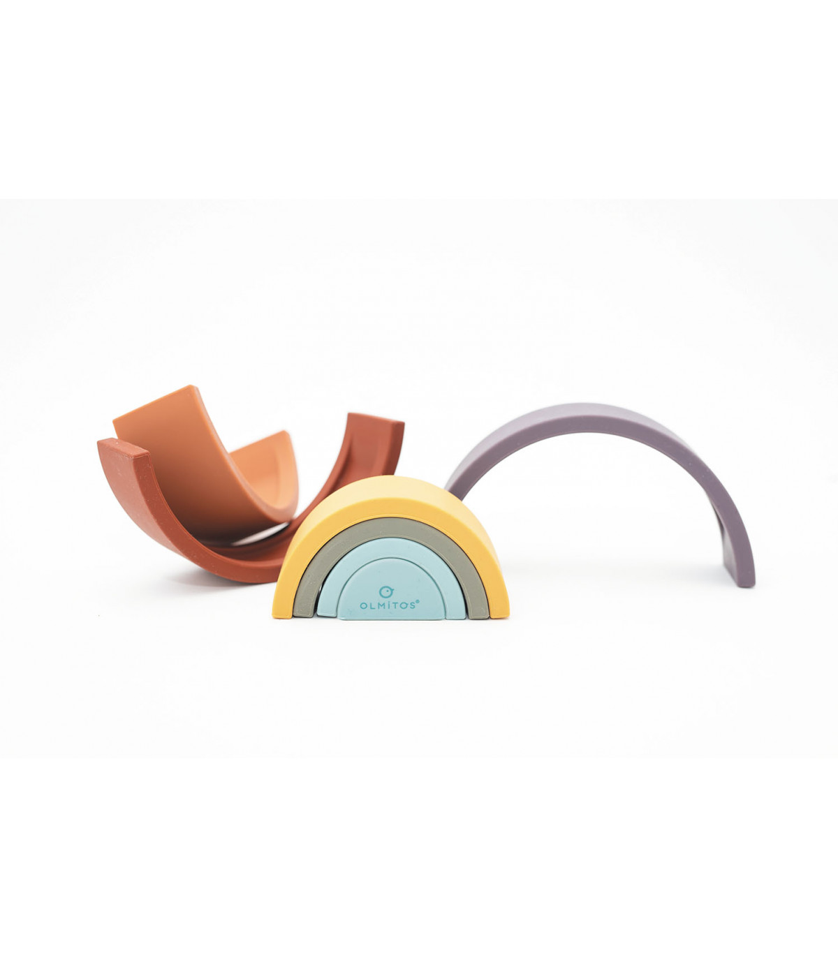 O arco-íris de silicone da Olmitos é um brinquedo muito completo com o qual o bebê aprenderá as cores, a relação de tamanho, desenvolverá habilidades e sua imaginação.