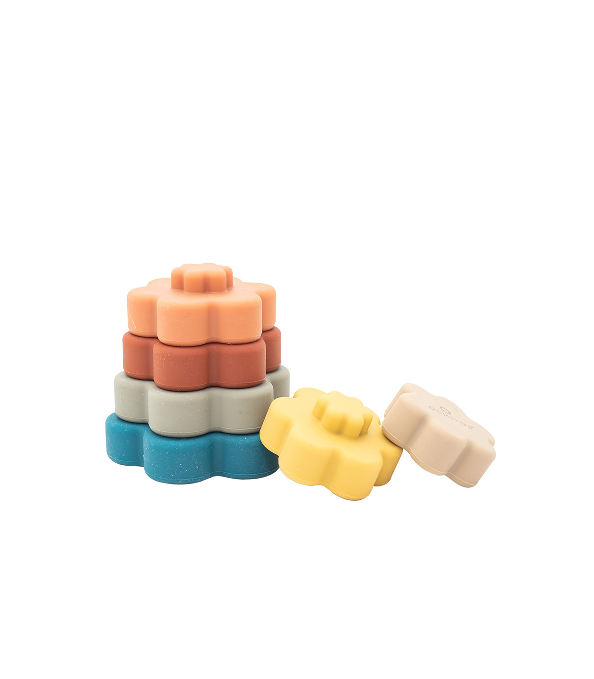 A flor de silicone empilhável desenvolve as habilidades motoras do bebê de forma divertida. É fácil empilhar os brinquedos para bebês.