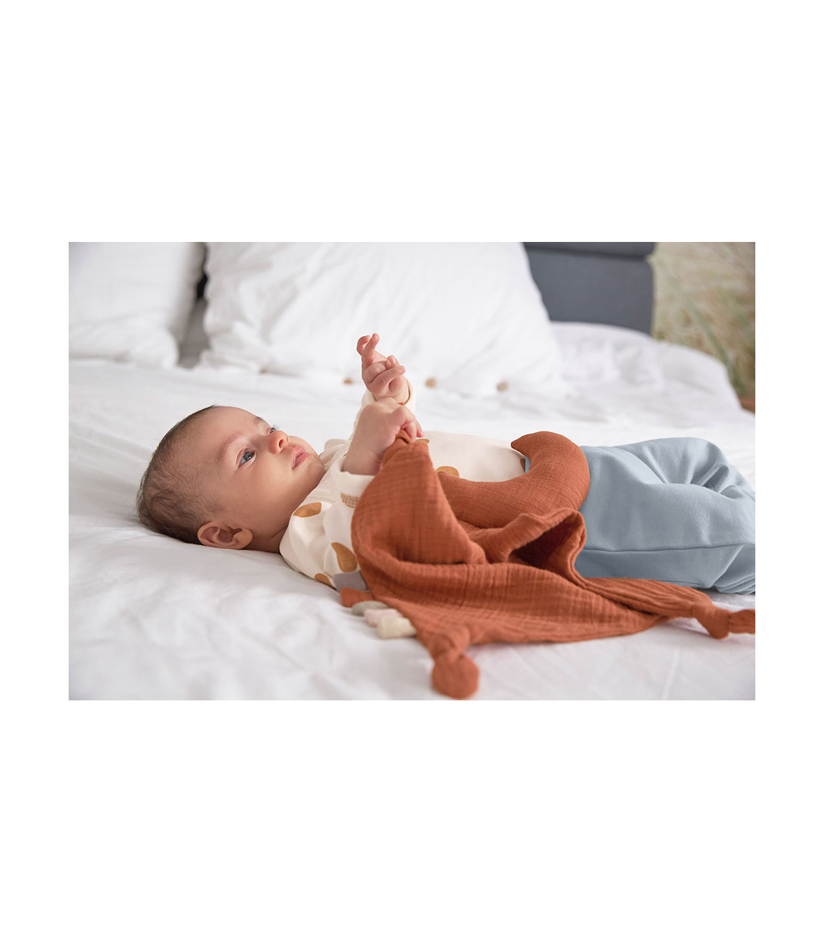 Feitos de algodão orgânico em tecido de musselina multicamadas, os panos edredões são particularmente absorventes e adequados para os primeiros meses, quando os bebês usam a boca para sentir e descobrir.